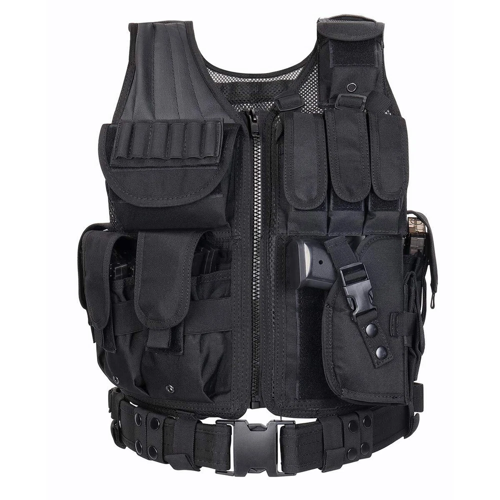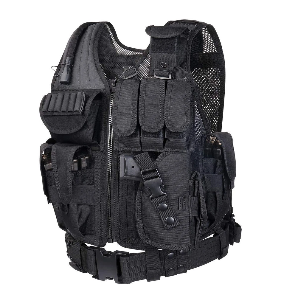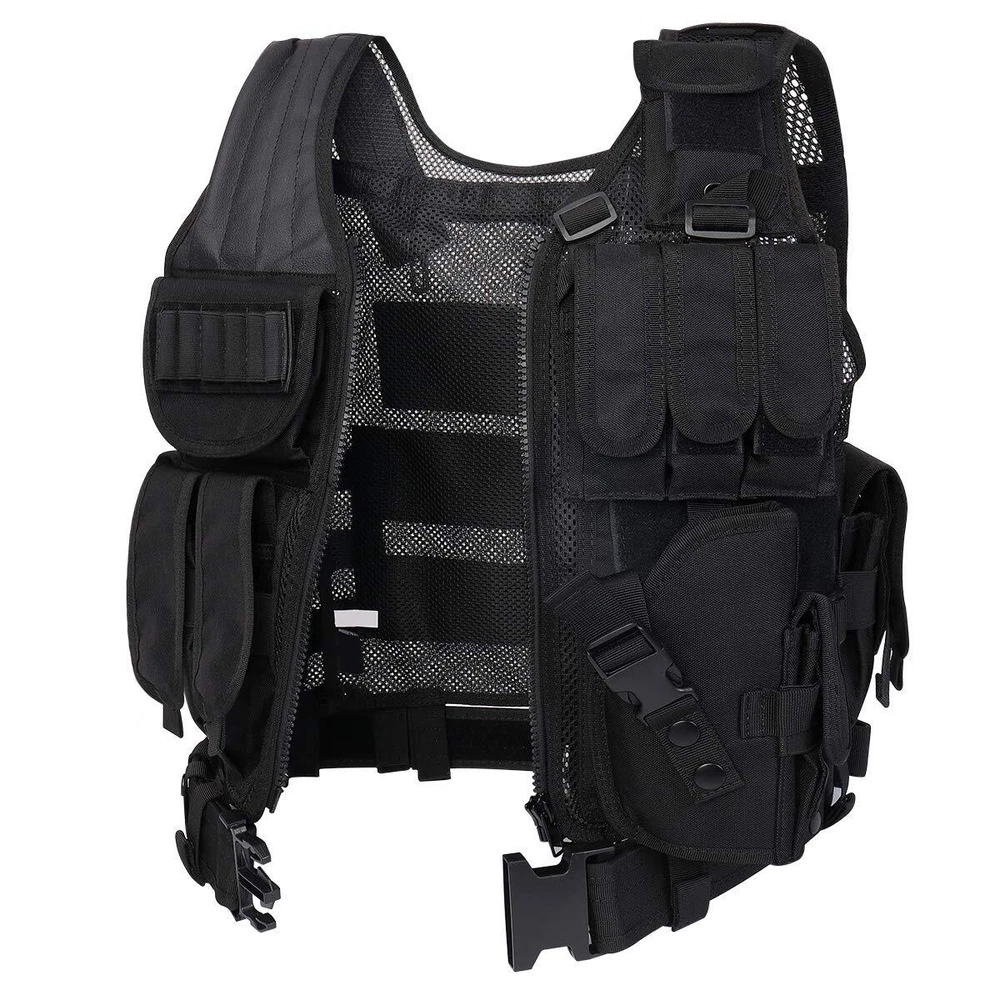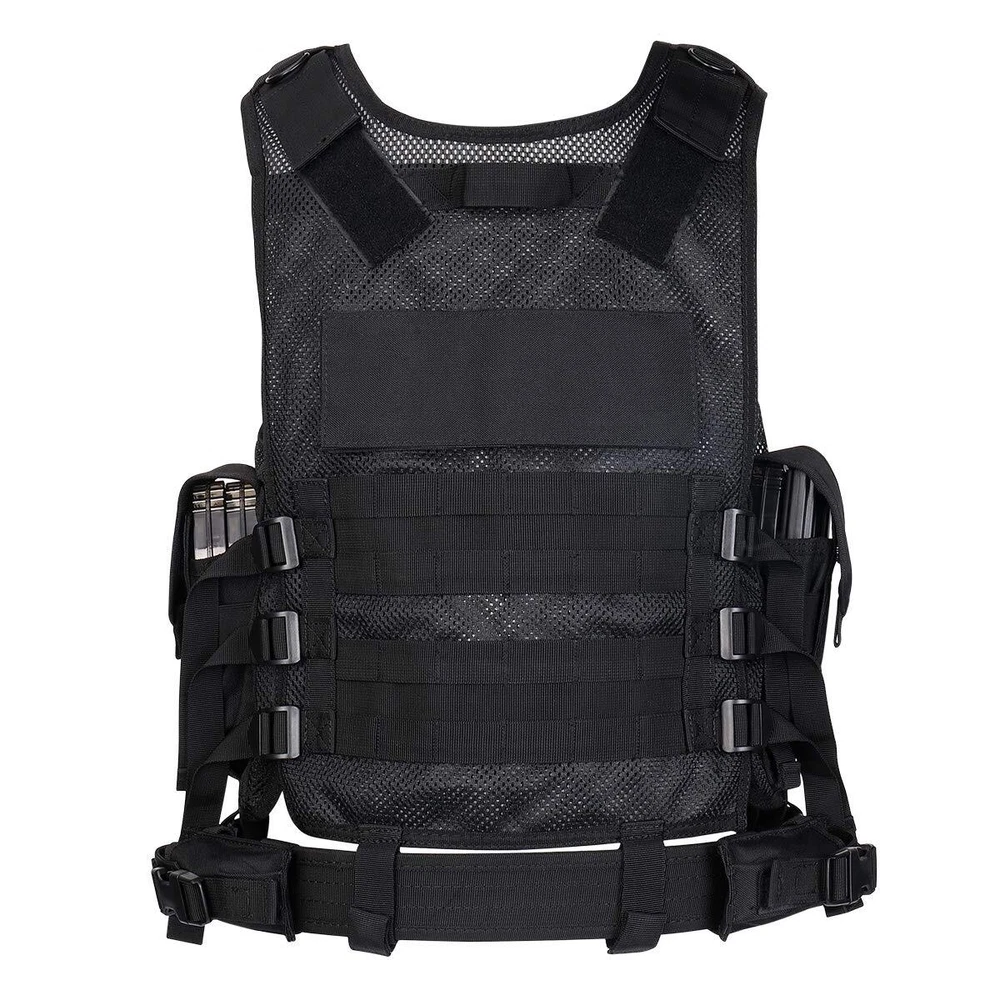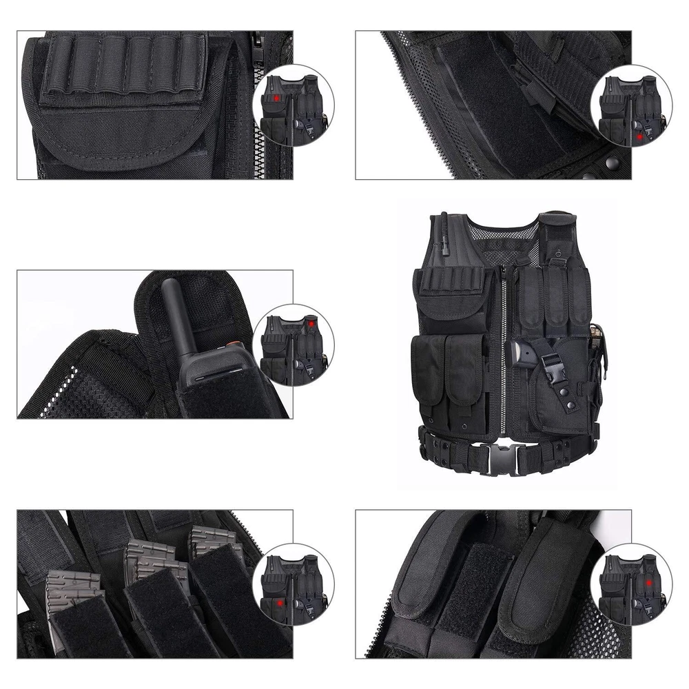 30-Days NO RISK 100% Full Assurance for any reason .The best and only Tactical vest you'll ever need. If you are not satisfied for any reason,such as size and any other reason, money back ! SIZE’ Adjustable for adults, S-XXXXL: the maximum waist is 57 inches (145cm), the smallest waist is 35 inches (89CM); the longest length is 22.5 inches (57cm); the shortest length is 20.5 inches (52cm), it could be adjusted to fit the shoulder and waist size. NOTE:Different people and different assembly methods will cause differences in waist circumference and belt size on both sides,please be patient to adjust it. High Quality and Durable: made of 600D Encryption Polyester. High Quality materials and stitching. Mesh marterial for ventilation and comfort, Heavy duty back loop system for modular attachments. MOLLE & VELCRO: Rear panel of the vest is constructed with modular webbing for attaching additional gear and pouches. Rear of vest features an internal hydration pouch (bladder not included) Multi-options bag: 1 Deluxe Universal Holster, 3 Deluxe Adjustable Mag Pouches, 3 Deluxe Universal Mag/Flashlight Pouches 1 Radio Pouch,1 Large ID Pouch , Sniper Shoulder. A Great Modular Tactical Vest for Airsoft and Paintball games. This tactical vest is a great choice for you,you will get best performance in paintball, airsoft and other outdoor activities such as camping and even on duty.