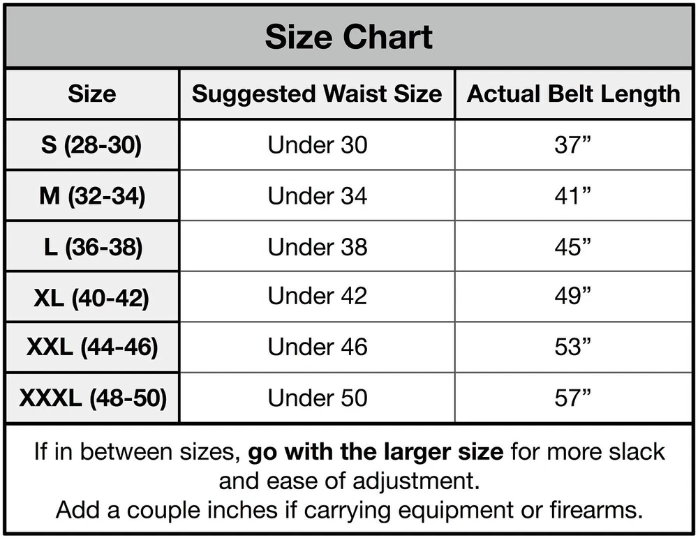 Heavy-Duty Quality - Our tactical belts for men are made from stiffened, 2-ply, non-abrasive nylon webbing for comfortable IWB and OWB carry without rolling over. No Metal - A solid polymer buckle keeps this webbing belt free of metals, making it ideal for avoiding those frustrating airport and security delays. Practical - Designed with extreme conditions in mind, these 1.5" nylon belts for men are made to handle everyday carry, military and tactical training, outdoor survival, hunting, and more. Convenient Options - Our Riggers belt comes in 3 colors (black, green, coyote tan), a variety of sizes to accommodate 28" to 50" waists, and without holes for a fully adjustable, custom fit. Versatile - Suitable for EMTs, first responders, and law enforcement, this mens tactical belt can hold firearms, work tools, hunting gear, holsters, and other essentials with confidence.