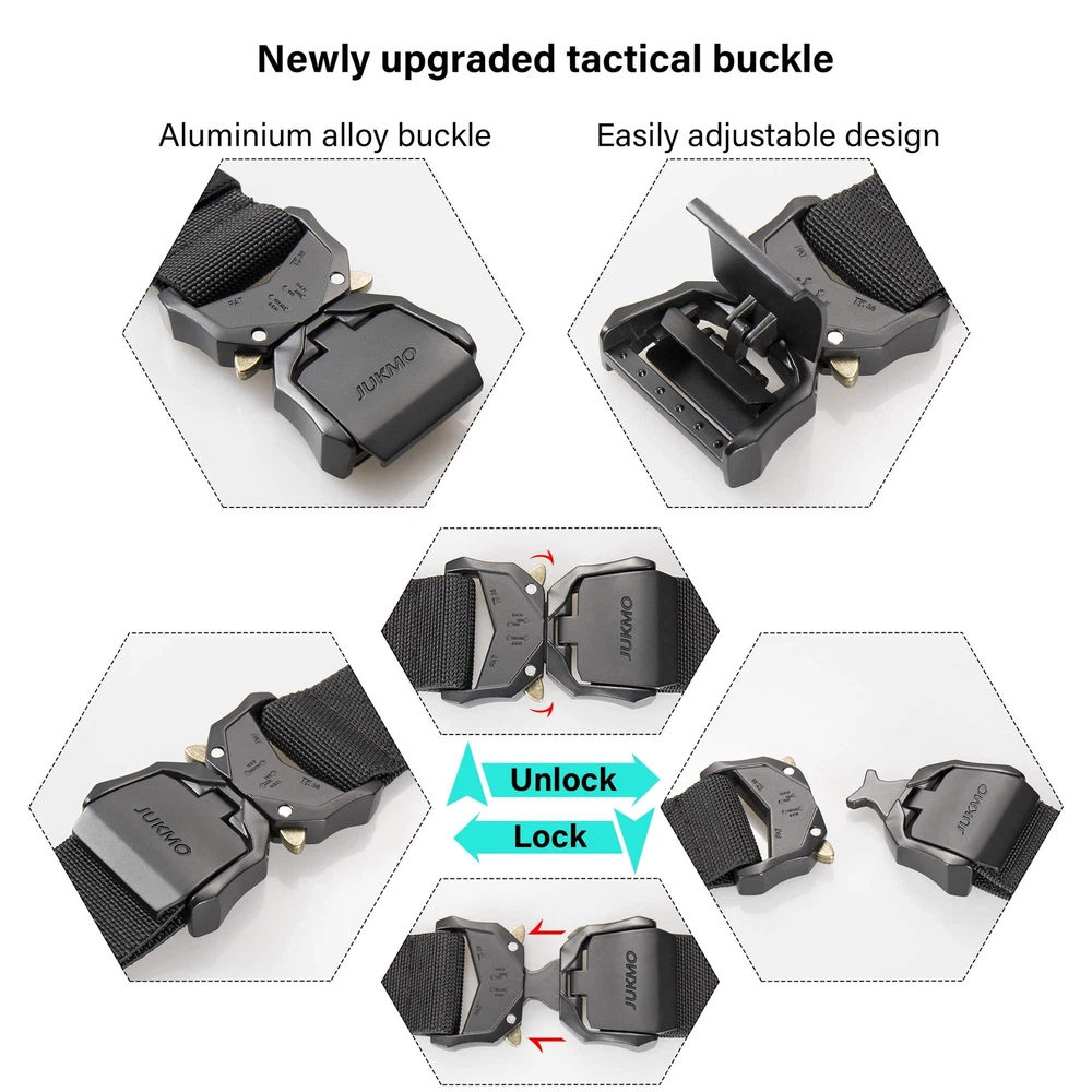 QUICK RELEASE BUCKLE UPGRADED VERSION:The crafted heavy-duty buckle, made of aluminium alloy, has very strong load-bearing capacity, which can meet your different wearing requirements. The upgraded part is that it is more convenient to adjust the length to perfect fit more than you can imagine. If you want to understand more intuitively how to be more convenient, you can watch our short tactical video. HIGH QULITY STRETCH NYLON:We intent to make the strap be stretch. The strap is made by special stretch material which is more solid than regular belt. More than that, it is very sturdy as well as stretch, which make your waist be more comfortable as well as stay tight, when you take large range of activities. Anyone who do physical activities for a long period of hours will get a great use out of the tactical belt FOR SPECIAL YOU: Our solid belt suits for military, SWAT, fire fighters, work, sport and other tactical users. Anyone who need to take any activity will be in harmony with the belt AS A PRESENT: Our elaborate belt is enclosed in an elegant gift box for you giving whoever you love, or yourself SHOPPING GUARANTEE:If you meet any problems after purchasing the belt, please don't hesitate to contact us. We promise to provide you 100% satisfaction guarantee