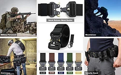 Product Name: Tactical Belt / Tactical Belt Military Belt Length: 125cm / 135cm (49.21 inch) Belt Width: 3.8cm (1.49 inch) Buckle Material: Metal Buckle Belt Material: Nylon Weight: about 0.25-0.5kg Color: Black, Brown, Blue, Green, Khaki Department Name: Adult Belt Material: Canvas Belt Material: Metal Gender: MEN Belt Width: 3.8cm Style: Casual Pattern Type: Solid Buckle Length: 6.8cm Model Number: Tactical BeltItem Type: Belt < br> Buckle Width: 5.2cm Buckle Material: Metal Alloy Military Tactical Belt: Police Belt Tactical Belt: Military Belt Army Belt: Nylon Belt Color: Black, Brown, Blue, Green, Khaki < br> Belt length: 125 cm / 135 cm Quick Release: It fits a waist size of 28-42 inches and is arbitrarily adjustable. tactical belt features a quick release buckle made of aluminum alloy, offering heavy-duty design and strong load-bearing capacity. Simply press the button on the buckle to quickly open, making it ideal for military, outdoor activities, or any scenario that requires rapid adjustment High-Quality Nylon: tactical belt is made of high-quality nylon, which is both durable and lightweight. It provides reliable support during work, outdoor adventures, and tactical operations. The nylon material is both soft and sturdy, ensuring comfort and stability during extensive movements Versatile Use: tactical belt is suitable for a wide range of applications, from military to everyday wear. It is ideal for work, outdoor adventures, hiking, climbing, and other activities. Its strong load-bearing capacity makes it perfect for carrying gear or tools Gift Packaging: tactical belt comes with an elegant gift box, making it perfect for gifting to family, friends, or colleagues. Whether it's for a birthday, holiday, or any other special occasion, this is a thoughtful gift. It's also a great choice for treating yourself Shopping : We provide you with a quality so that you can with confidence. Provide product quality . Comes with a gift box and is beautifully packaged. Trust the brand for your tactical belt needs