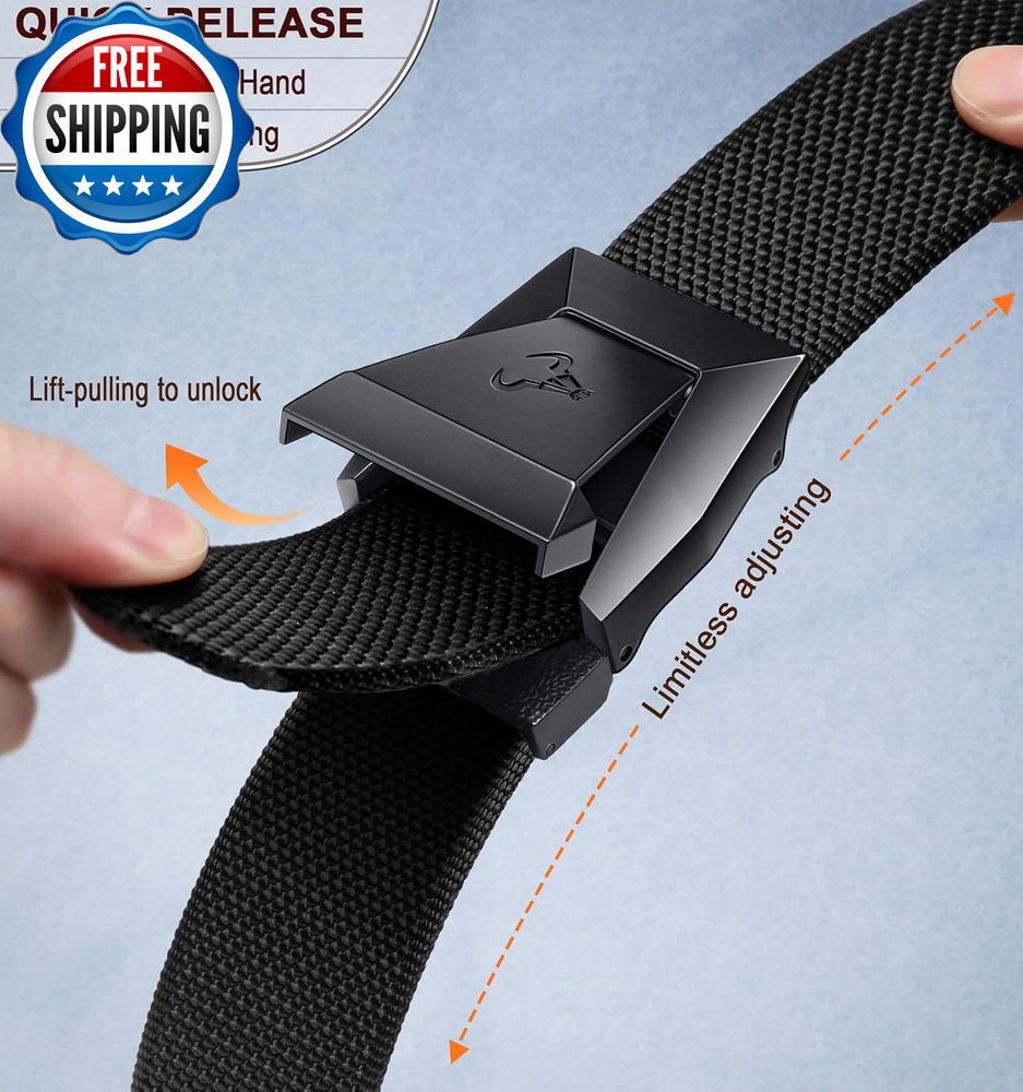Tactical Belt for Men, Men Stretch Nylon Web Gift Belt 1.5"-Hiking Rigger Military Work-Quick Release Product Description BULLIANT-From Nature, For Your Nature Add to Cart Add to Cart Add to Cart Add to Cart Add to Cart Add to Cart Customer Reviews 4.6 out of 5 stars 618 4.6 out of 5 stars 11,949 4.6 out of 5 stars 45,293 4.5 out of 5 stars 4,655 4.6 out of 5 stars 13,675 4.6 out of 5 stars 15,630 Price $19.99 $ 19 . 99 $19.99 $ 19 . 99 $17.98 $ 17 . 98 $19.99 $ 19 . 99 $17.99 $ 17 . 99 $26.99 $ 26 . 99 Belt Width 1 1/2"(38mm) 1 3/8"(35mm) 1 3/8"(35mm) 1 3/8"(35mm) 1 1/3"(34mm) 1 1/3"(34mm) Waist Size range 30"-50" 28"-52" 28"-52" 26"-50" 26"-50" 26"-50" Adjustable range Limitless 7.5" 7.5" Limitless Limitless Limitless Adjusting step Stepless 1/4" 1/4" Stepless Stepless Stepless Resize by cut ✘ ✔ ✔ ✘ ✘ ✘ Gift Package ✔ ✔ ✔ ✔ ✔ ✔ The video showcases the product in use. The video guides you through product setup. The video compares multiple products. The video shows the product being unpacked. 1 PRODUCT-STRUCTURE 2 3 4 TRIM FOR SIZE 1-Opening the cover of the gripper of buckle from the back hole by a scissors; 2-Taking strap off from buckle and cutting for desired size; 3-Burning the cut end by lighter flame just avoiding fraying out 4-Reassembling and done For a 42” waist which is better the 38-42 or the 42-46? We recommend that you can buy a larger size, and as our waistbands can be trimmed, you can always cut off more. Will the belt set off metal detectors? Are they TSA approved? Yes, they are subject to setting off metal detectors and are not TSA approved. We advise you to remove your belt and wallet before going through the metal detector. What is inside the package? Package: 1*gift box, 1*metal buckle, 1*nylon belt, 1*operating guide. Department Men Color Black2543 Size 34"-38"Waist Adjustable Shipping Fast shipping is very important for us. Our standard US shipping service is FREE. Your order will be shipped within 2-3 business days upon full payment received. Your order will be delivered within 2-3 business days after the handling time. We only ship to the confirmed PayPal address. We reserve the right to cancel any order for any reason at any time. We are not responsible for undeliverable addresses. Returns and payment We offer a 30 days return policy from checkout winning date. We allow only PayPal as payment method FeedBack Your feedback very important to us, after you get your package and you are satisfied with our service please leave us positive feedback If you have any problem with your order / any questions please before leave any type of feedback Please visit our eBay store to check out other items for sale! Thank you for shopping at our store.