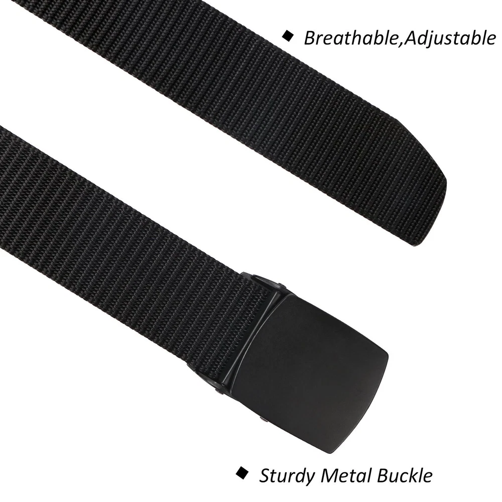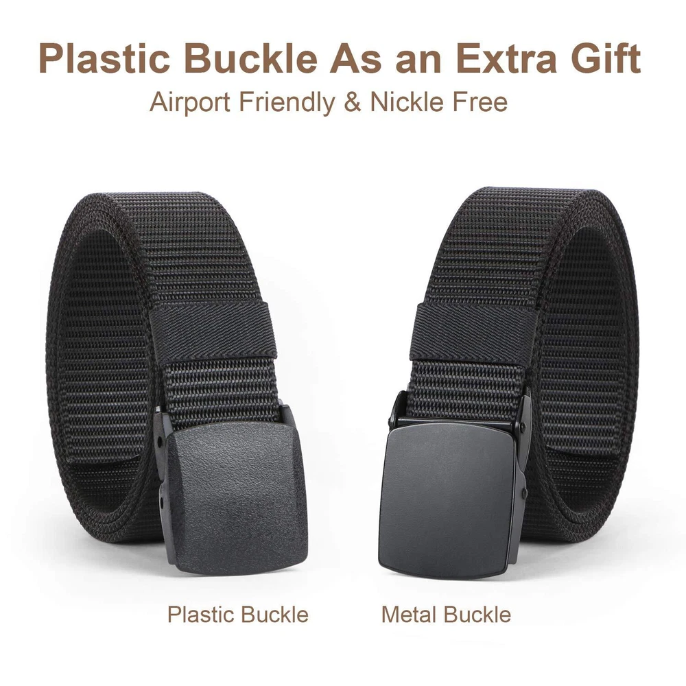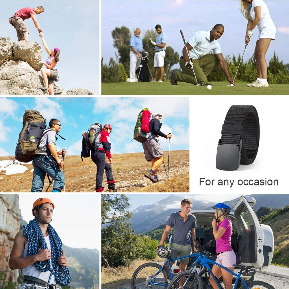 About Us is one of the most desirable fashion brands,which has been dedicated to providing happy online shopping experience to our customers. We aim to bring high quality belts for everyday wear,with affordable prices, quick delivery and good customer service. Your satisfaction has always been our top priority. Product Features: Durable Material-This is a high quality nylon belt with a classic timeless design metal buckle,and bicolor reversible strap.lightweight and breathable. Stylish and Versatile-The fashion design web belt is not only use for daily wear,but also for outdoor and heavy duty work:travel,riding,hiking,climbing,tactical duty,military training,utility. Fully Adjustable-No holes in the belt fully adjustable.Easy to use,and comfortable to wear.If it is too long,trim to fit your size,and seal it by a lighter. Plastic buckle as an extra gift-Lightweight and nickel free,good for clearance at security checkpoints. It’s perfect to change the buckle to have different style at any time,if you need to match your outfits. Size Reference-140cm/55’’ fit for Pant Size below 46’’ Width:3.8cm/1.5’’. Durable & breathable-This is a high quality tactical belt,durable and sturdy,made of breathable and lightweight material,and sturdy Metal Buckle. Fully adjustable-This nylon belt suit for pant size below 54".No holes in the belt,fully adjustable! Easy to use, Comfortable to wear!If it is too long,easy to trim to fit your size,and seal it by a lighter. Versatile style-Fashion design webbing belt with classic metal buckle,and reversible bicolor strap,both sides can be used.Ideal choice for outdoor and heavy duty work:travel, riding,hiking, climbing, tactical duty,military training, utility or daily wear to match your causal Jeans and shorts. Extra gift-Plastic buckle as an extra gift.Lightweight and nickel free,good for clearance at security checkpoints.It’s perfect to change the buckle to have different style at any time,if you need to match your outfits. promise-100% satisfaction guaranteed,Any questions before or after sale will be responded with satisfied solutions.