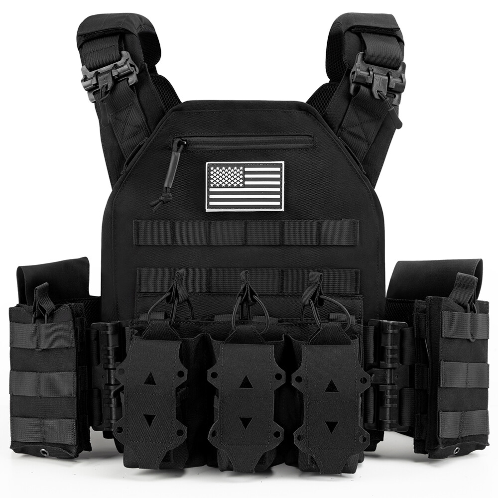 【HIGH QUALITY】 The weight vest composed of 900D fabric, high-tensile strength thread, and webbing is equipped with a map pouch and three modular heavy-duty mag panels.It comes with two stable side straps as well as adjustable padded shoulder straps. The weight vests are fully padded with breathable 3D mesh, which are comfortable and keep you cool by allowing air circulation. 【FUNCTIONAL-RAPID OPEN】 This weight vest is built with rapid-open connectors on the shoulders and waist that make it easy to quickly put it on and take it off. The unique cummerbund features integrated pockets that can even be accessed through the side for added protection in case it's required. The ideal tool for training, hiking, camping, extreme challenges, and fans alike. 【MOLLE SYSTEM】 Throughout the weight vest, there are MOLLE webbing attachment points and optional personalization options. Map pockets with snap-and-hook closures keep important documents within reach, and pockets offer easy access to soft pocket as needed. Shock-cords and cord locks can be hidden in the back of the vest, not only can the waist and size be adjusted, it can also enhance the feeling of comfort. 【 PERFECT SIZE 】 Adjustable shoulder strap and cummerbund fit most people from size S to XXXL size: maximum waist 52 inches, minimum waist 32 inches. Retro kit integrates seamlessly with carriers that use hook-and-loop flap systems to fit different waist sizes. In addition, waist belts and shoulder straps can also achieve the effect you want. 【USE SCENES】 Target for tactical training. Packaging: 1x Tactical Vest , other items not included.