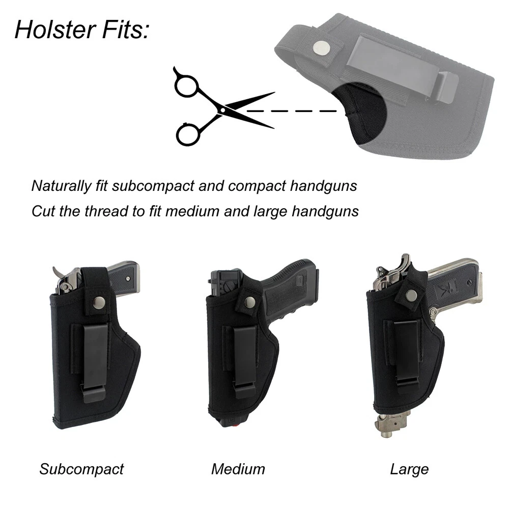 Tactical Concealed Carry Left/Right Hand IWB OWB Gun Holster/Choose Gun Model US Tactical Concealed Carry Left/Right Hand IWB OWB Gun Holster/Choose Gun Model US 100% brand new and high-quality made. Naturally fit subcompact and compact handguns, you may also cut the thread to fit medium and large handguns. The heavy duty belt clip ensures your holster stays put when you draw your gun no matter the situation. Metal clip for Ambidextrous usage on either left or right hand side. Metal Clip fits up to 2 inch wide waist belt. Package Includes: 1x Concealed Carry Holster Shipping Policy Returns Contact Us All orders will be processed and shipped within 12 hours, Monday to Friday in most cases. Most packages will be shipped via USPS First Mail, it usually takes 3-5 days for delivery. A tracking number will be emailed to you upon shipment. Please note that USPS does not update tracking information location by location. We only ship to address that you input during Paypal checkout. Buyers are responsible for wrong or undeliverable address. Returns will be accepted within 30 days after delivery. However, if the item is damaged upon arrival, buyers must contact us within 3 days after delivery for any refund or replacement. Returns will not be accepted if buyers caused any damages to the item. Refunds are given as Exchange or Money Back. Please be patient when contacting us, all messages will be replied within 12 hours. Please let us know immediately if a package is damaged upon arrival. Feel free to contact us if you’d like to combine shipping on your purchases. We appreciate your feedback and we will send buyers positive feedback after a shipment has been processed. Customer satisfaction is significant to us. If you are dissatisfied with a transaction for any reason. Before taking any action, please contact us through eBay and we will do everything we can to help you. Listing and template services provided by inkFrog