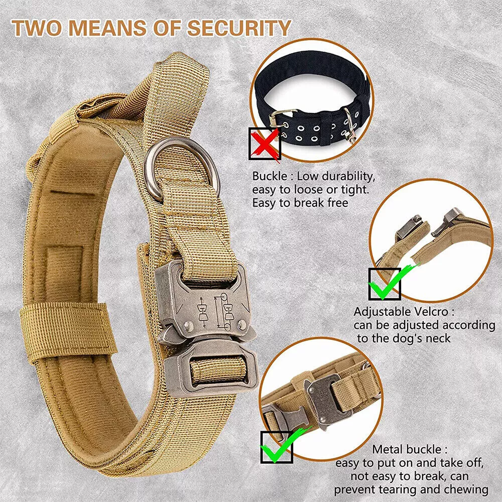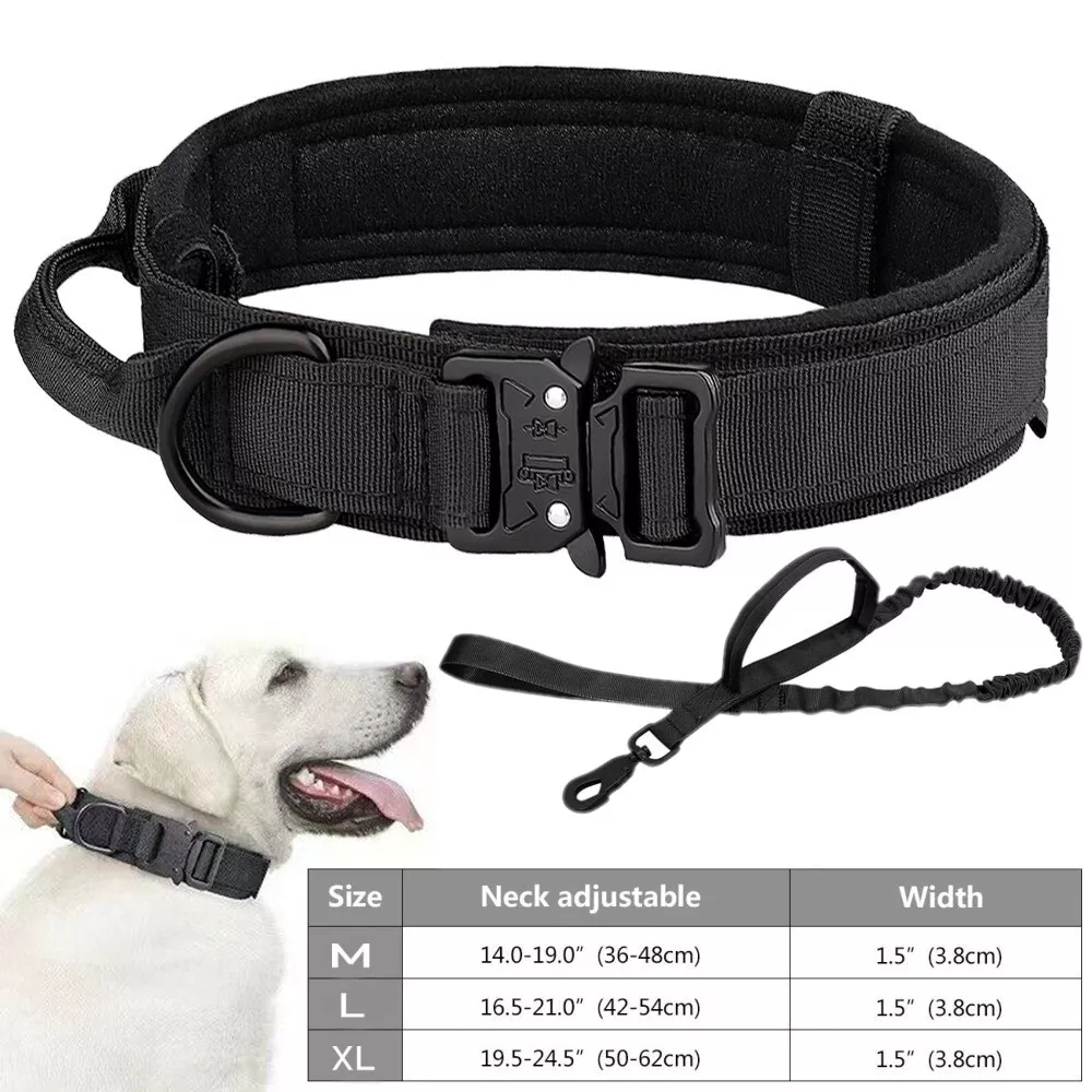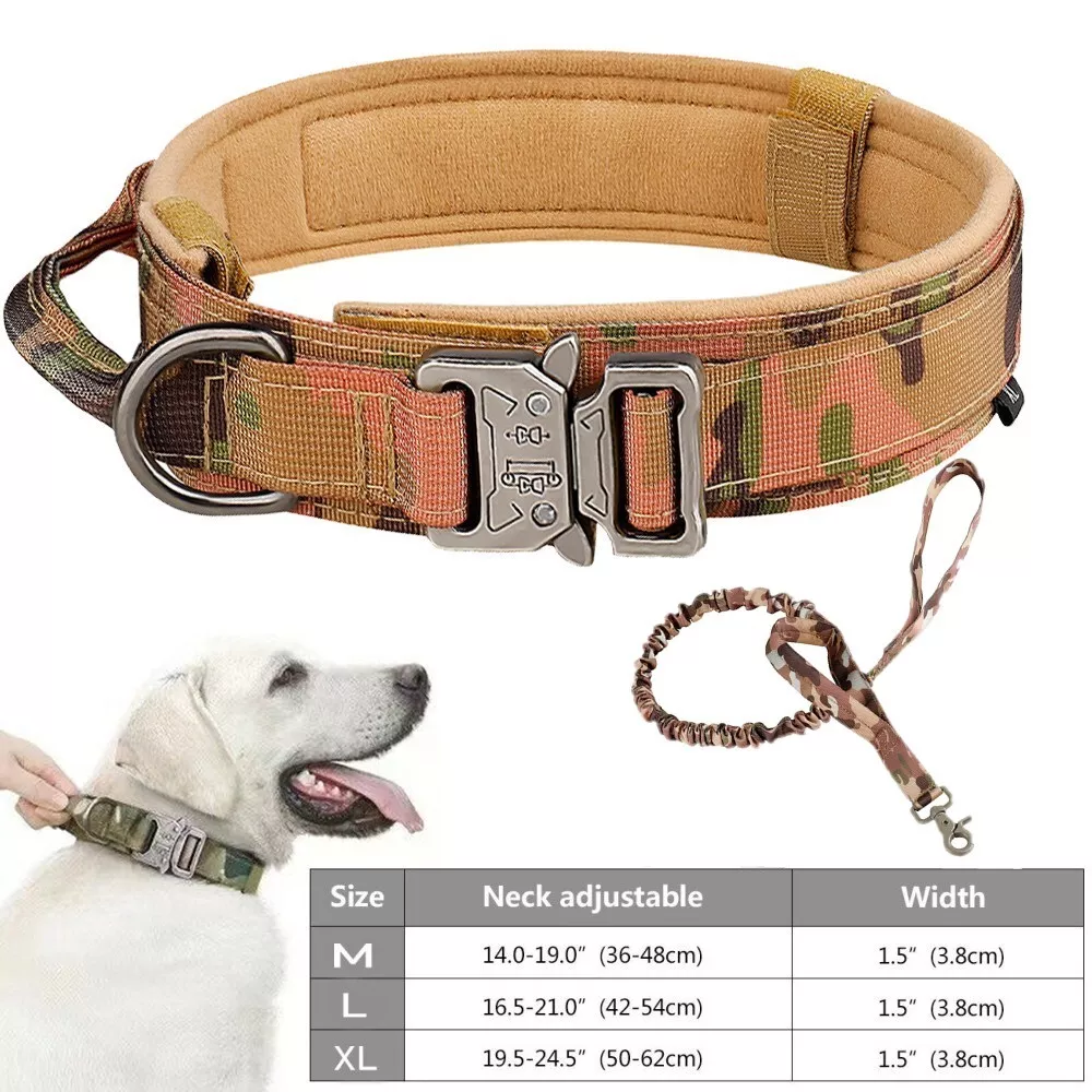 Tactical Dog Collar w/ Handle +Leash Heavy Duty Military Service Canine Training
