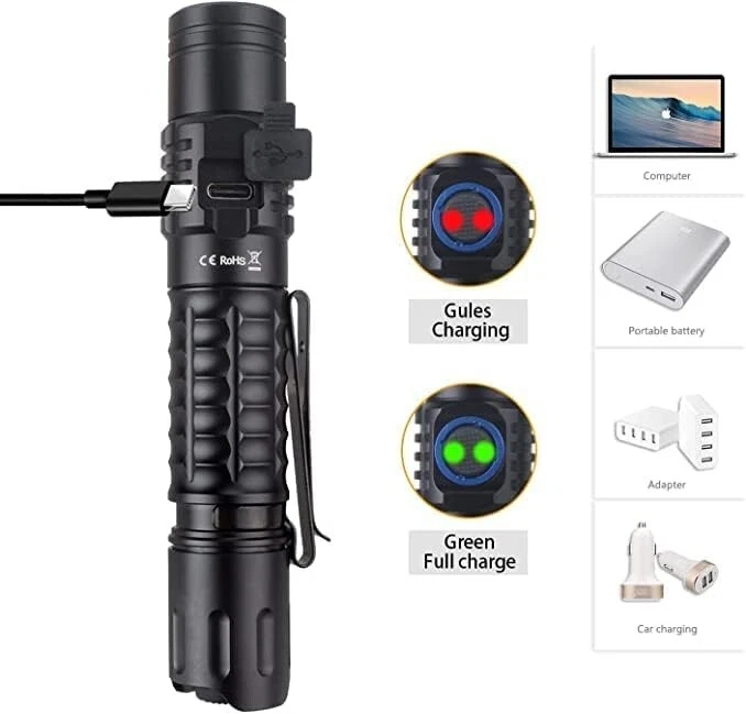 Tactical EDC Flashlight 2000 Lumen with USB-C Charging, Dual Switch & Waterproof ‹ › ‹ › ‹ › ‹ › ‹ › ‹ › ‹ › ‹ › ‹ › Tactical EDC Flashlight - 2000 Lumen Your ultimate outdoor companion, the Tactical EDC Flashlight delivers sheer brilliance and reliability in an elegant, compact design. Premium Features: SUPER BRIGHT 2000 LUMENS: Equipped with advanced LED technology, this flashlight reaches up to 2000 lumens with an impressive range of 345 meters. Ideal for any situation, the emitter boasts a lifespan of 100,000 hours. FAST USB C CHARGING: With included USB A-C charging capabilities, the flashlight fully charges in no time. On high mode (800 lumens), enjoy approximately 3.5 hours of illumination, or extend it to an astonishing 230 hours on Eco mode (10 lumens). TACTICAL & STEPPED MODE: Easily switch between tactical and stepped modes. Cycle through Low-Medium-High in stepped mode or Medium-Turbo in tactical mode for optimized performance tailored to your needs. SUPERIOR RELIABILITY: Crafted from robust aeroplane-grade aluminum, this flashlight withstands the elements with weather-resistant seals and corrosion-resistant anodizing. Experience 200% more strength than standard flashlights, ensuring it is built to last. SATISFACTION GUARANTEED: Enjoy a risk-free purchase with 30-day free returns and a one-year free repair policy. Our dedicated customer service team is available 24/7 to assist you. SIZE & WEIGHT: Measuring 136.5mm in length and 24mm in head diameter, at 130g (with battery), it is an effortlessly portable and comfortable everyday carry or duty light. Why Choose Our Tactical EDC Flashlight? Illuminate your world with the Tactical EDC Flashlight – a perfect blend of power, compactness, and resilience. Whether you're engaged in outdoor adventures, camping, hiking, or simply require dependable lighting at home, this feature-rich flashlight meets all demands with ease and style. Embrace the power of brightness and portability. Make the Tactical EDC Flashlight yours today! Shipping Free & Fast Shipping - We offer free shipping to most of the USA with a normal delivery time of 3-7 days. However, due to the current situation, additional delivery time (up to 3 weeks) may be required for some items. Alternative Carriers - We may use alternative carriers (e.g. USPS, FedEx, UPS, etc.) to ensure your package arrives safely and on time. Due to the use of multiple carriers, we are unable to provide a tracking number automatically. Handling Time - Orders are processed and shipped within 1-2 business days of receiving cleared payment. Shipping Restrictions - Shipping to Alaska, Hawaii, Puerto Rico, Guam, and other US territories may incur shipping charges or delivery restrictions. Please contact us before ordering, or your order can be refunded/cancelled. State Restrictions - There may be restrictions based on your state of purchase. For example, certain items may not be shipped to California due to state regulations. Contact for Tracking Updates - If you require tracking updates or have any concerns about the delivery of your order, please feel free to contact us, and we will be happy to assist you. Return 30-Day Hassle-Free Returns - We want you to be completely satisfied with your purchase. If you are not, you can return the item within 30 days of receiving it for a full refund or exchange. Easy Return Process - To start a return, simply contact us and we will provide you with a prepaid return shipping label and detailed instructions. Restocking Fee - There are no restocking fees for returns. However, the buyer is responsible for return shipping costs if the return is not due to a seller's error. Refund Processing Time - Refunds will be processed within 5 business days of receiving the returned item in its original condition. Payment We accept all major credit cards, PayPal, and Apple Pay for your convenience. Your payment information is secure and encrypted to ensure a safe and seamless transaction. Please complete your payment within 3 days of purchase to avoid any delays in shipping. Feedback Your feedback is extremely important to us. We strive to provide the best products and customer service possible. If you are satisfied with your purchase, please take a moment to leave us a positive review. If you have any concerns or issues with your order, please contact us before leaving negative feedback. We are committed to resolving any problems and ensuring your satisfaction. Contact Us If you have any questions or concerns, please feel free to reach out to our customer support team. You can contact us through the eBay messaging system. We are available Monday to Friday, 9:00 am to 5:00 pm EST, and we will do our best to respond to your inquiry within 24 hours. Thank you for supporting our small family business! UPC: Not Set Voltage: 3.7 volts (ac) Item Height: Tactical Flashlight Item Length: Tactical Flashlight Item Weight: 85 grams Item Width: Not Set Model: Not Set Lumens: 2000 lumen Number of LEDs: 1 Unit Quantity: 1 Features: Batteries Included,Rechargeable,Waterproof,Tactical Mode,Stepped Mode,Power Indicator Material: Aluminum Brand: Unbranded Type: Flashlight Lighting Technology: LED Power Source: Battery Operating Range: 345 m MPN: Not Set Battery Technology: Lithium Ion Number of Batteries: 1 Color: fc12-grey Country/Region of Manufacture: Not Set IP Rating: IP68 Operating Time: 230 hours Number of Lights: 1-3 Unit Type: Not Set Personalize: Not Set