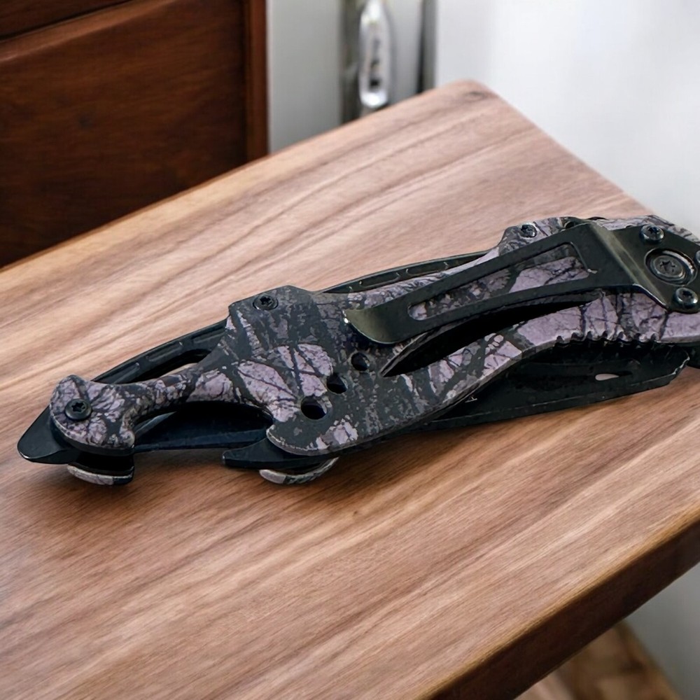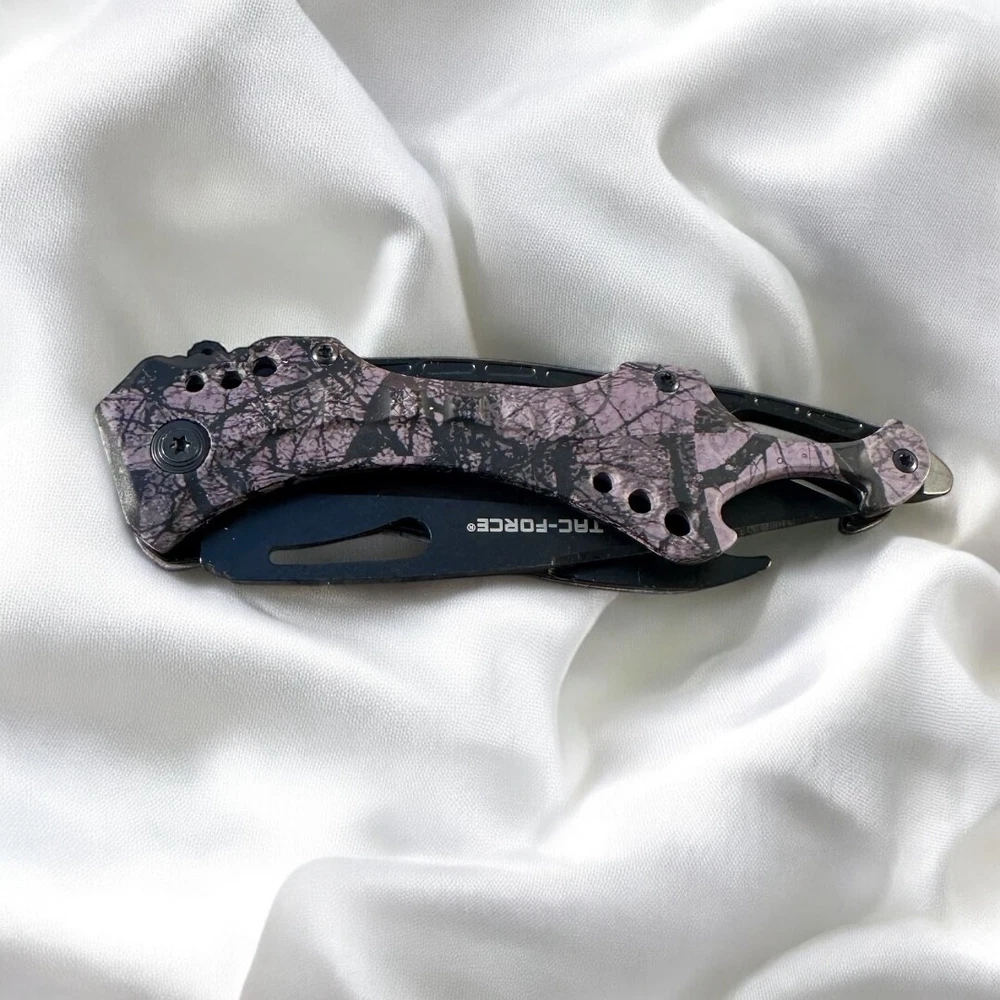 Make a bold statement with this Tac-Force folding knife, featuring a sleek black blade and eye-catching purple camouflage handle. Whether you're collecting, gifting, or carrying for utility, this knife combines function and flair in one durable tool. πΉ Key Features: π§ Stainless steel drop point blade with partial serration π£ Unique purple camo handle with ergonomic grip π© Integrated belt/pocket clip for convenient everyday carry πͺ Built-in glass breaker and seatbelt cutter for emergency use π One-handed thumb stud opening for quick deployment π οΈ Liner lock design for secure blade use Buyer must be 18+ and comply with all local, state, and federal laws.