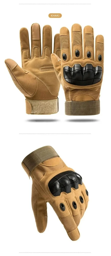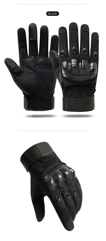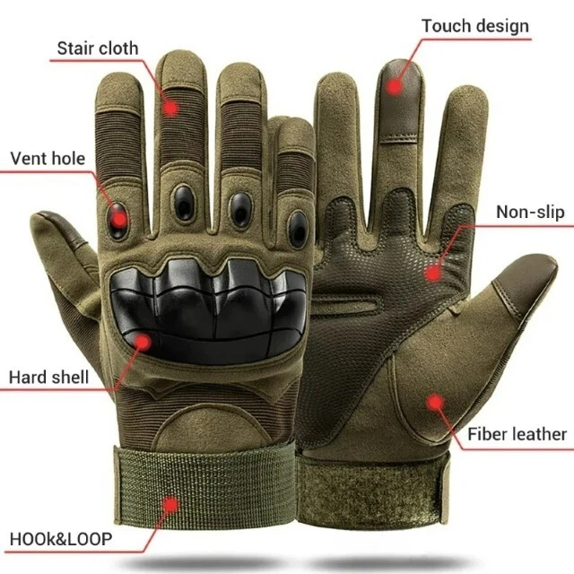eBay Product Listing Tactical Full Finger Gloves Army Police Military Shooting Paintball Combat Work Product Description Experience ultimate protection and comfort with these Waterproof Winter Motorcycle Gloves. Built for durability and functionality, these gloves are perfect for outdoor activities like motorcycling, off-road racing, hiking, and cold-weather sports. Designed with a touchscreen feature, windproof materials, and excellent grip, they are the ideal choice for anyone seeking reliable performance in extreme conditions. Specifications Material : Durable stretch fabric, hardshell protection, and microfiber leather Colors : Green, Black, Sand Sizes : M, L, XL Options : Full-finger and half-finger designs Perfect For Outdoor Activities: Motorcycling, cycling, hiking, off-road racing, and more Extreme Weather: Rain, snow, and winter cold Key Features 100% Protection : Hard knuckle guards and anti-slip palm. Touchscreen Ready : Use devices without removing gloves. Warm & Windproof : Soft lining and adjustable cuffs for cold weather. Waterproof : Keeps hands dry in rain and snow. Notes Please allow 1-3cm error due to manual measurement. Colors may slightly vary due to different lighting conditions. Ensure accurate measurements before purchasing. Package Includes Selected Variation Explore More from Our Store Visit Store