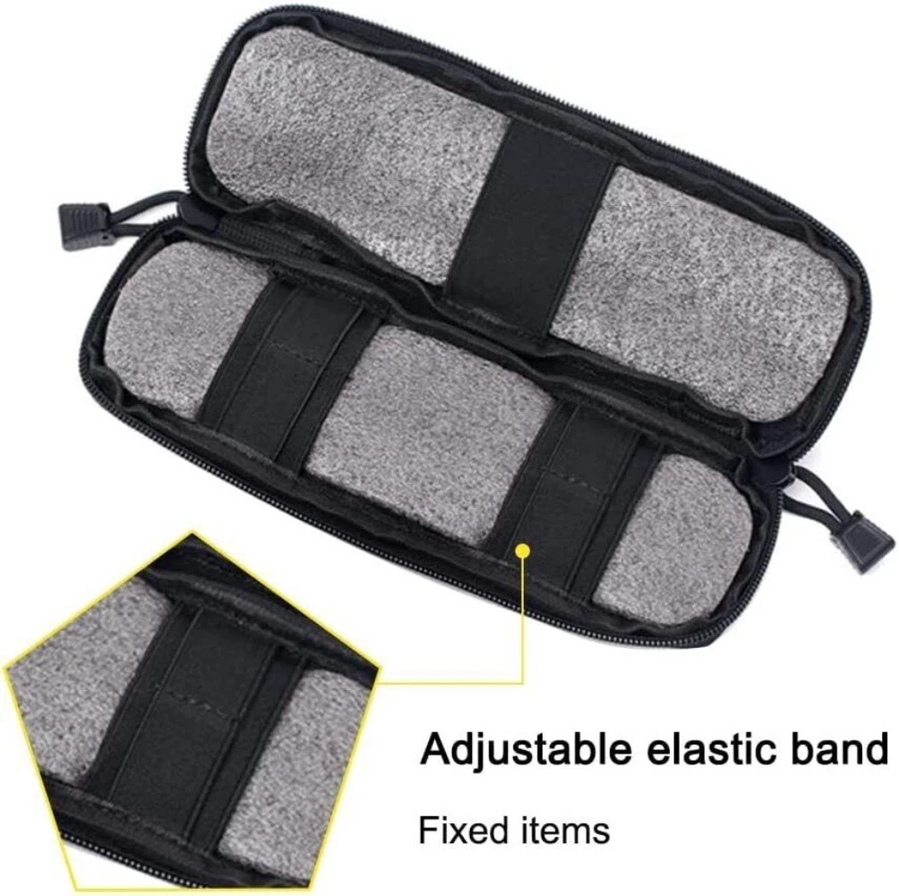 Features: 1. Made of high-quality synthetic fibers, which is wear-resistant and durable, and long service life. 2. Easy to carry, for using molle attachments, small molle pouch, tactical belt pouch, molle pouches tactical. 3. This is a compact design of the package, the shape of the bag is small and delicate, portable and lightweight. 4. The belt pouch has the adjustable elastic band and nylon clasp design which can fix the item firmly. 5. High quality and smooth zipper design ensures that things will not fall and easier to close and open bags. 6. The vest pouch can accommodate the tools and objects commonly used in outdoor travel, such as cutter, compasses, flashlight and other EDC tools. 7. The bag design with Molle system which can be directly hung through the waist belt on the waist, and can also be hung on the backpack, which is convenient to carry. Specifications: Material:1000D Nylon Color:Khaki,Army Green,Black Size: L:25x8x2.5cm/9.84*3.15*0.98inch Application:Travel,Hiking,Camping Features:Durable,portable,lightweight,wear-resistant,tear-resistant,waterproof Package included: 1 X Tactical Molle Knife Pouch(Knife is not included)
