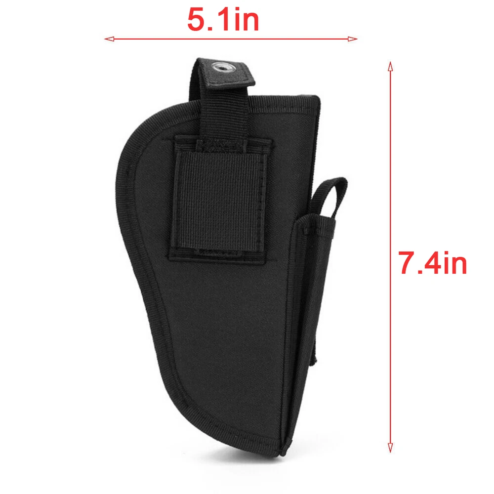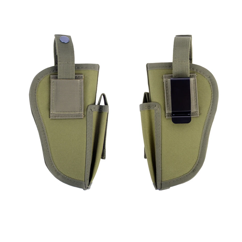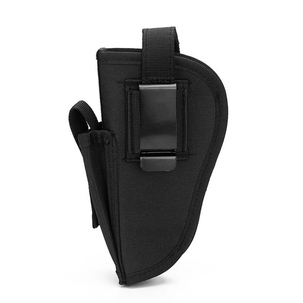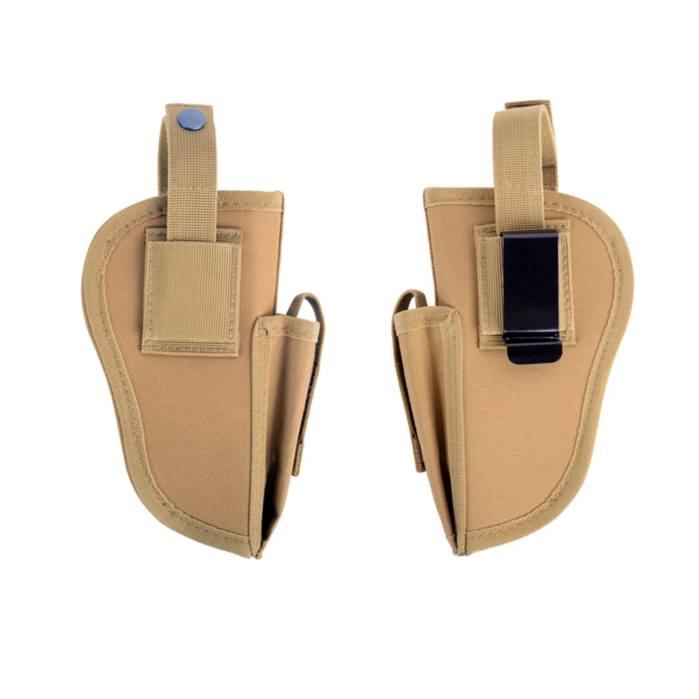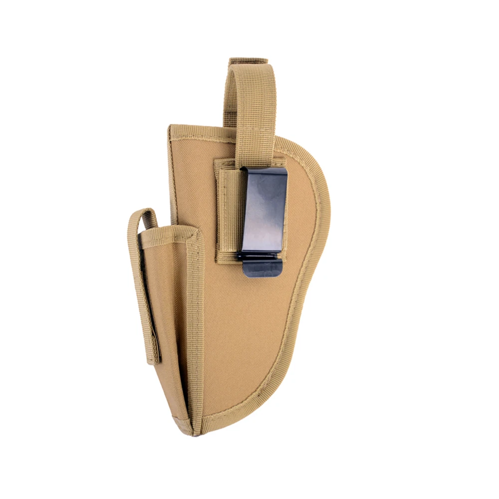 Product Description: Concealed Waist Gun Holder Lightweight Compact Double-Ended Pistol Handgun Pouch Modular Universal Holster Features: 1. Hidden universal holster. 2. It is exquisite, lightweight, durability and portability. 3. It can adjustable, suitable for left or right hand free replacement. 4. It is equipped with safety buckle, fixing belt and a metal clip, which can also be assembled and disassembled as required. 5. The holster can be attached on your waist belt and fasten to your leg. Specifications: 1. Material: Nylon 2. Colors: Black, Khaki, Army Green 3. Size: 20*10.5cm 4. Weight: about 127g Package Included: 1x Universal Concealed Carry Holster Note: 1. All pictures are professionally color-coded, but due to the difference of ambient light and display equipment settings, there may be some deviation between the pictures you see and the objects themselves, please understand. 2. The data is measured manually, and there may be some deviation, but it does not affect the use.
