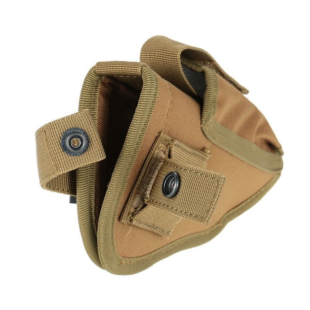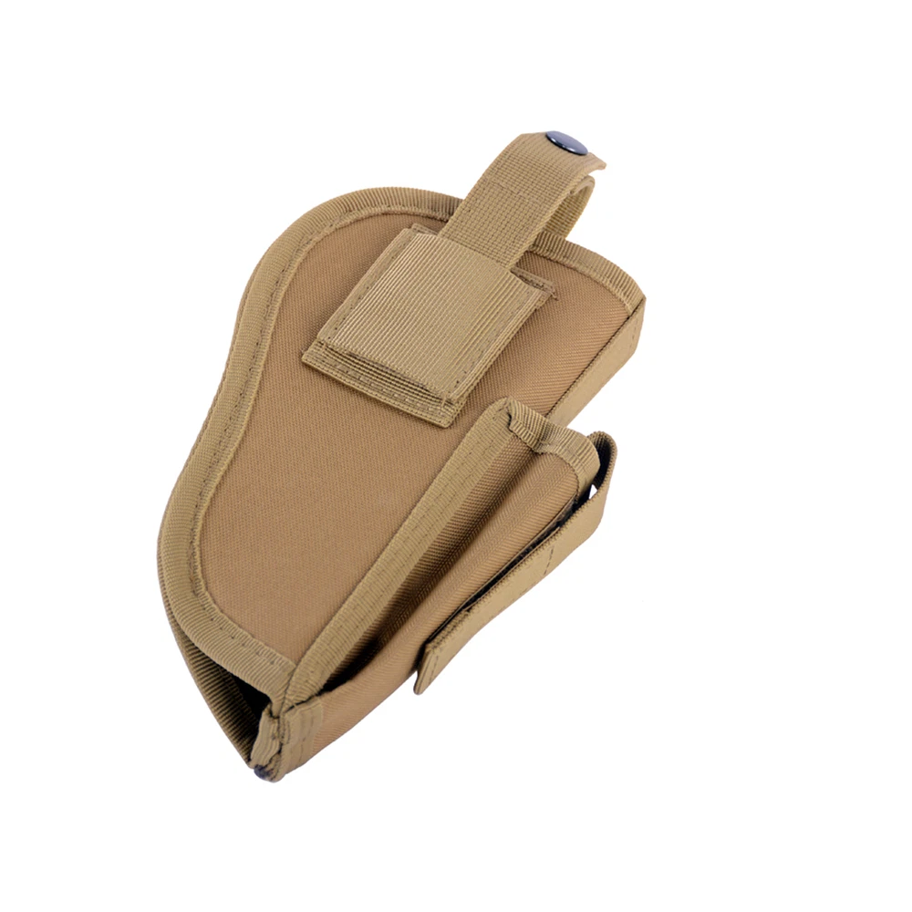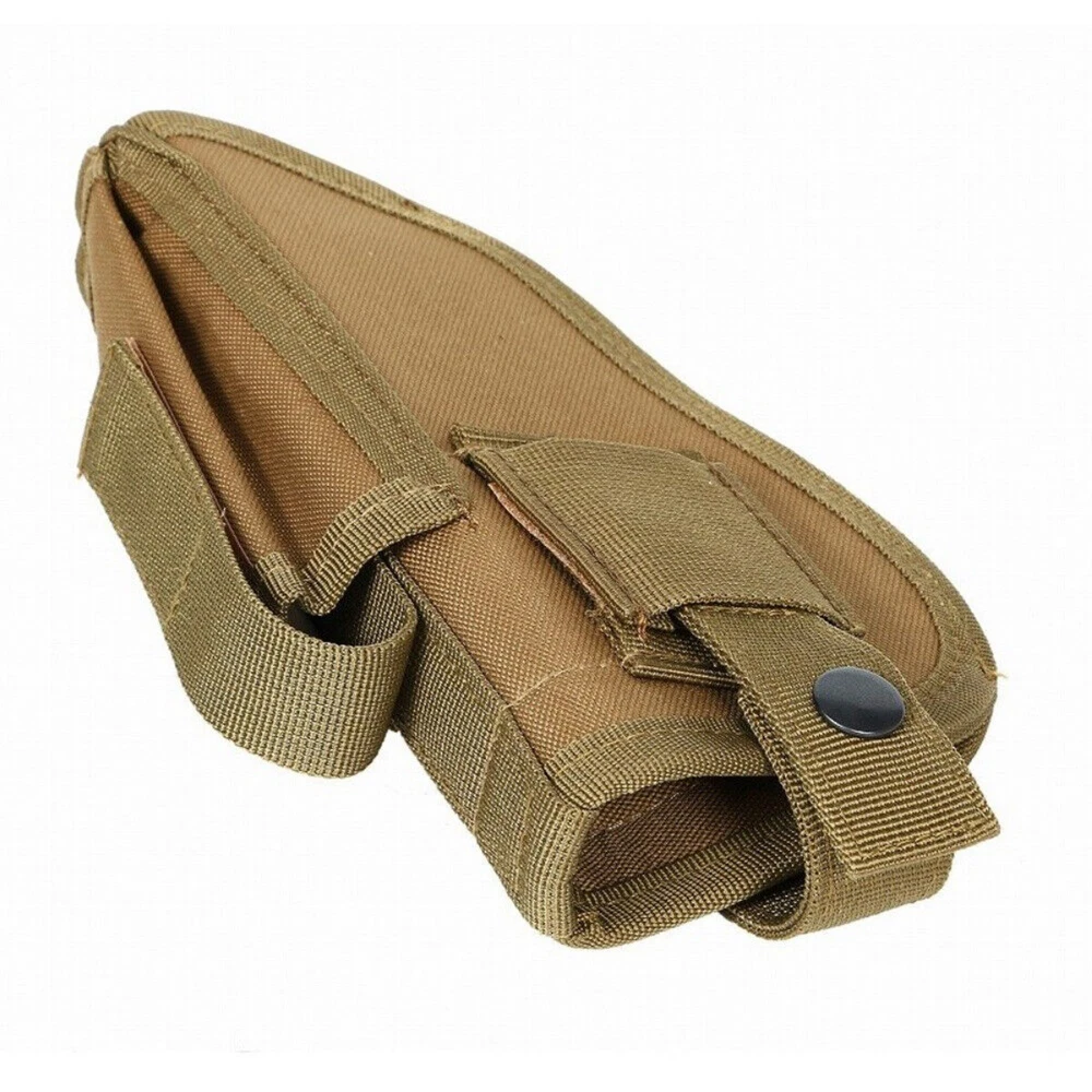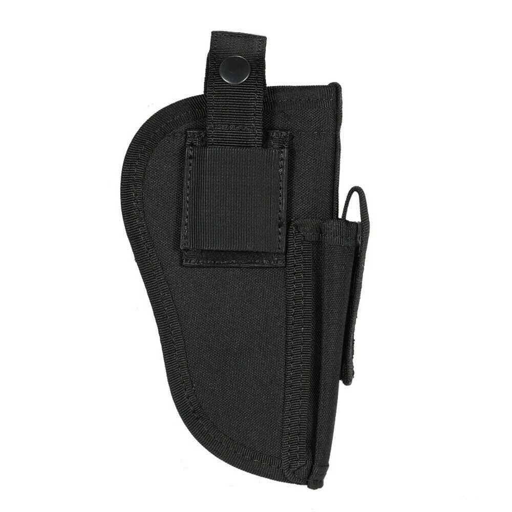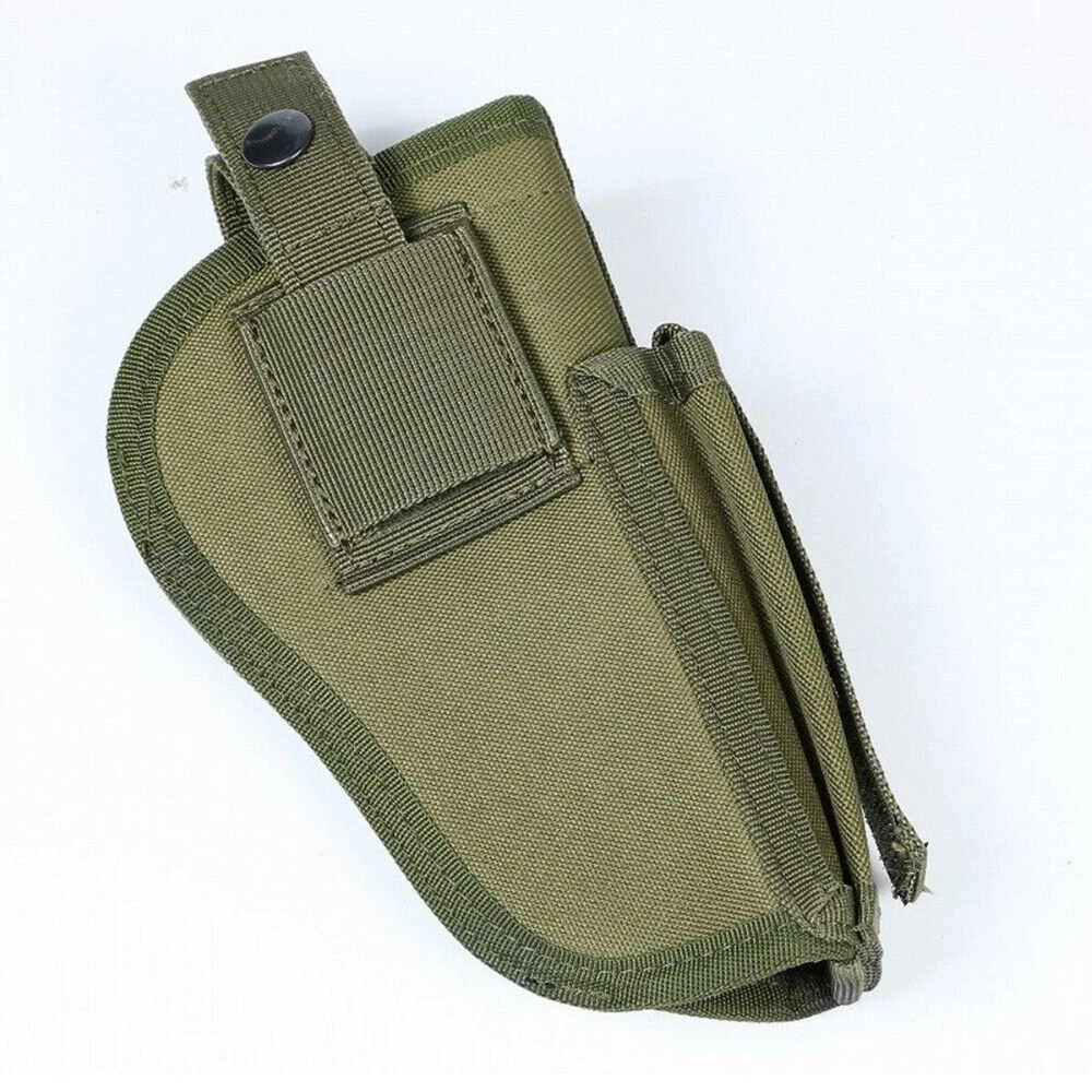 Product Description: Concealed Waist Gun Holder Lightweight Compact Double-Ended Pistol Handgun Pouch Modular Universal Holster Features: 1. Hidden universal holster. 2. It is exquisite, lightweight, durability and portability. 3. It can adjustable, suitable for left or right hand free replacement. 4. It is equipped with safety buckle, fixing belt and a metal clip, which can also be assembled and disassembled as required. 5. The holster can be attached on your waist belt and fasten to your leg. Specifications: 1. Material: Nylon 2. Colors: Black, Khaki, Army Green 3. Size: 20*10.5cm 4. Weight: about 127g Package Included: 1x Universal Concealed Carry Holster Note: 1. All pictures are professionally color-coded, but due to the difference of ambient light and display equipment settings, there may be some deviation between the pictures you see and the objects themselves, please understand. 2. The data is measured manually, and there may be some deviation, but it does not affect the use.