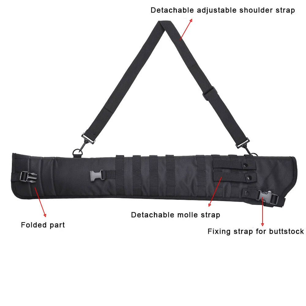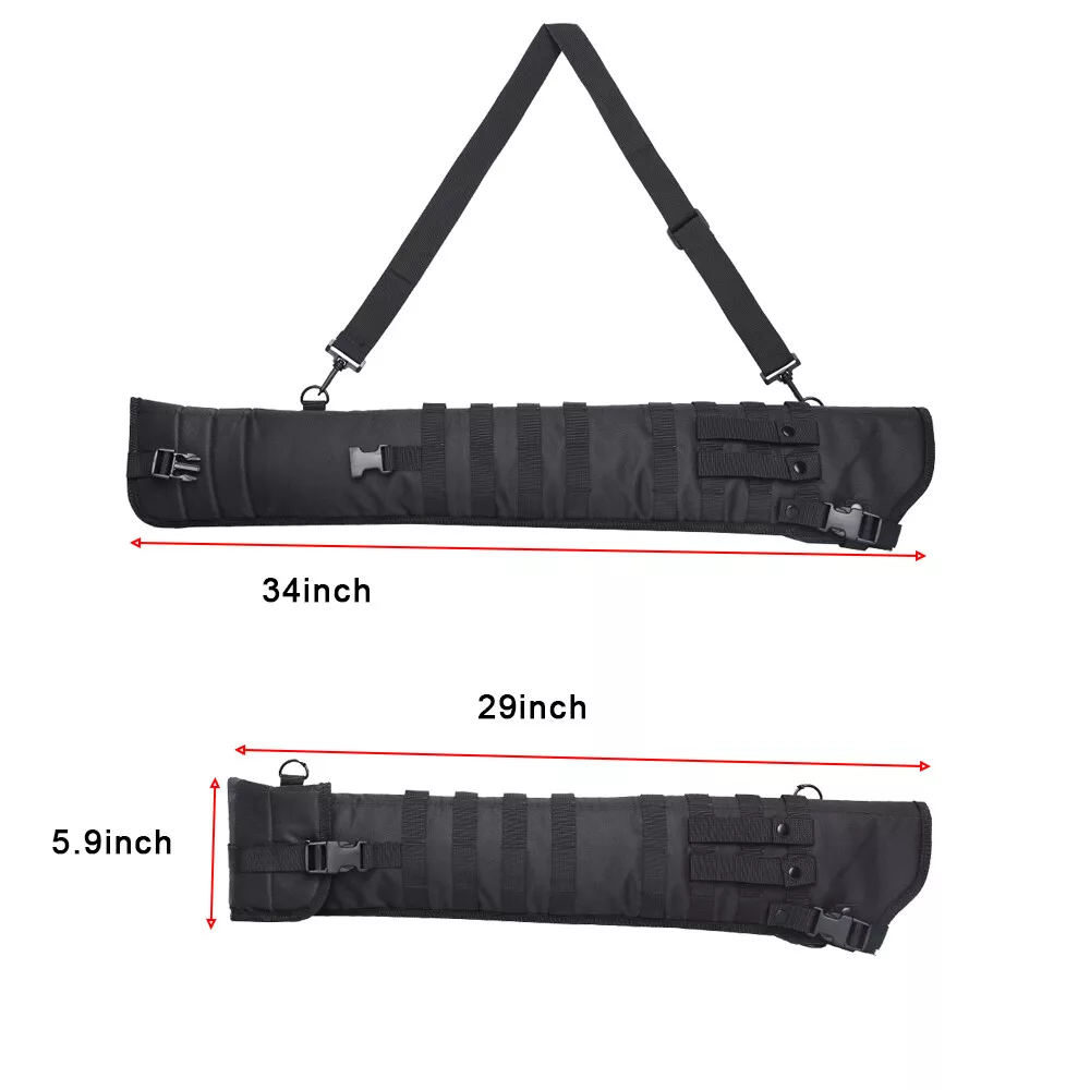 Products Photo Product Description Product Description Product name: Tactical Rifle Scabbard Specification: 34inchx5.9inch Material:600D high strength Oxford cloth Weight:0.4kg The tactical Rifle Scabbard is designed for shoulder carry or modular mounting. Webbing on both side with four detachable PALS straps for ambidextrous usage. Six D-ring locations for attaching the padded shoulder sling to for multiple carry options or preferences. Removable retention strap with quick-release buckle. Padding around the whole scabbard to protect your rifle. Webbing on both side with four detachable PALS straps for ambidextrous usage Six D-ring locations for attaching the padded shoulder sling to for multiple carry options or preferences Removable retention strap with quick-release buckle. Padding around the whole scabbard to protect your rifle Perfect for outdoor war game activities. Product Details Return Policy About Feadback Return Policy 1. Customer satisfaction is our top goal. We believe our items are so outstanding. All products are quality checked. They are new and in good condition when shipped to our customers. We are convinced you will be happy with your Purchase. 2. If product is defective or damage upon arrival, or wrong product shipped, please contact us immediately. Returns accepted within 14 days of delivery date and item must be in original new condition, not worn or altered in any way with attached tags & wrap. Otherwise deal is final. Return shipping must be paid by buyer. 3. Please contact us first if you have any problems/questions/concerns. We will be happy to resolve any issues you may have in a cordial and friendly manner. 4. We appreciate your Postive Feedback, and will do the same in return. DO NOT leave negative feedback without first communication with us. Please allow max 2 business days for us to response. About Feadback When you satisfied with our product and services please leave us positive feedback. If a problem occurs, contact us immediately with any email request. Just contact us using the " Ask the seller a question" link on eBay.