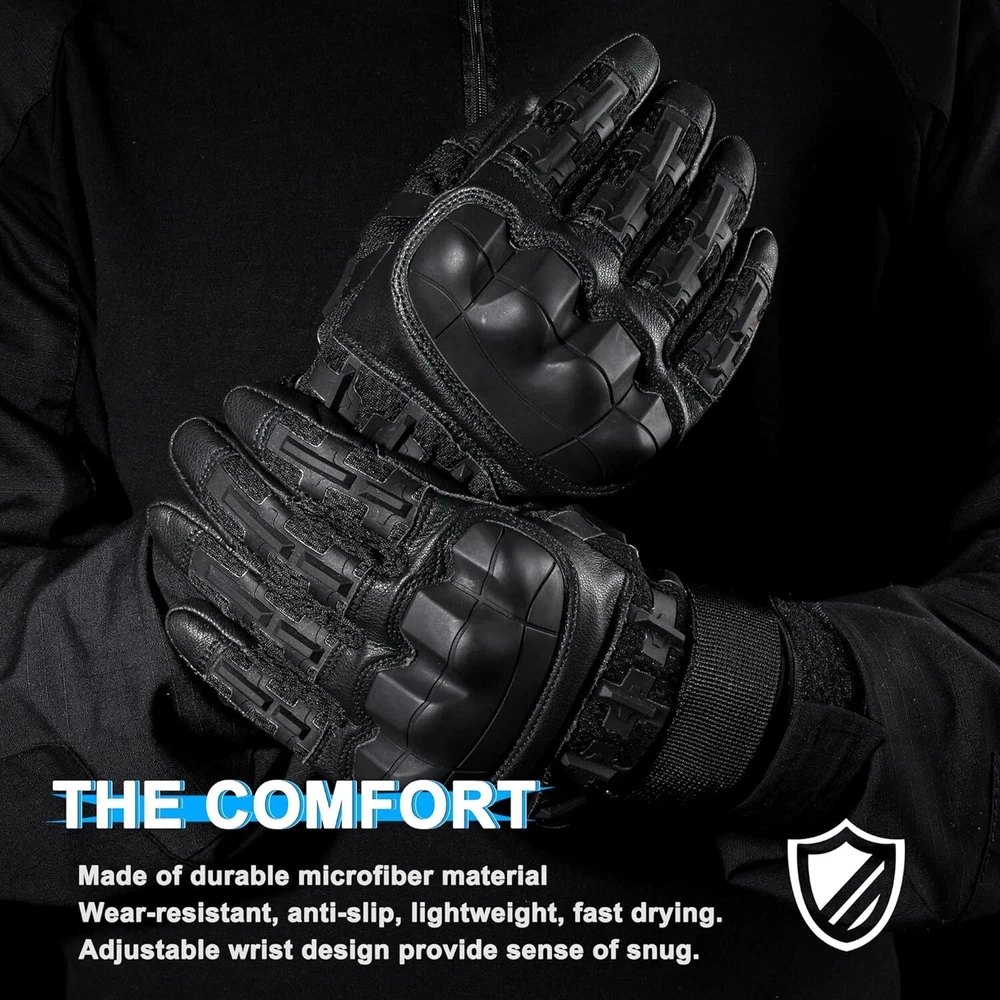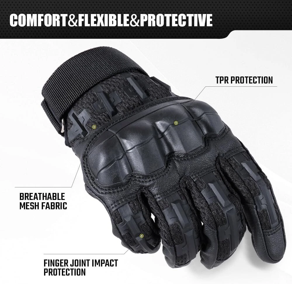 Product Description Features: 【Excellent Fabrics】: These tactical gloves are made of microfiber synthetic leather material that brings abrasion resistance and breathability. 【Full Protection】: 80% Coverage thermoplastic rubber provides high-impact protection on these gloves. 【Palm Protection】: Double stitched reinforced palms provide double protection, Keep your hands free from abrasions. The adjustable wrist design provides a better fit and comfort for outdoor activities. 【Excellent Touchscreen Function】: The perfect blend of dexterity and durability, these gloves can be used on smartphones, tablets & any capacitive touchscreen device for patrol or field work. 【Multi-scenario Application】Great suitable for tactical, airsoft, paintball, motorcycle, cycling, hiking, camping and etc. Also suitable for some kinds of work, such as lumbering and heavy industry. Specification: Material: Microfiber, PU Leather, Rubber Guard Colour: Black, Army Green, khaki, CP Weight: 197g Season: Spring, Summer, Autumn, Winter Gender: Unisex, Male, Female Sport: Cycling, Hunting, Motorcycle Racing, Camping and Hiking, Airsoft Features: Sensitive touch screen, hard case protection, wear-resistant palm pad Size: S/M/L/XL Size (palm circumference) Small: 17-18 CM / 6.69-7.08 Inch Medium: 19-20 CM / 7.48-7.87 Inch Large: 21-22 CM / 8.26-8.66 Inch X-Large: 23-24 CM / 9.05-9.44 Inch Due to manual measurement, it allows a difference of 0.12 (in). Package Included: 1 Pair of Tactical Gloves