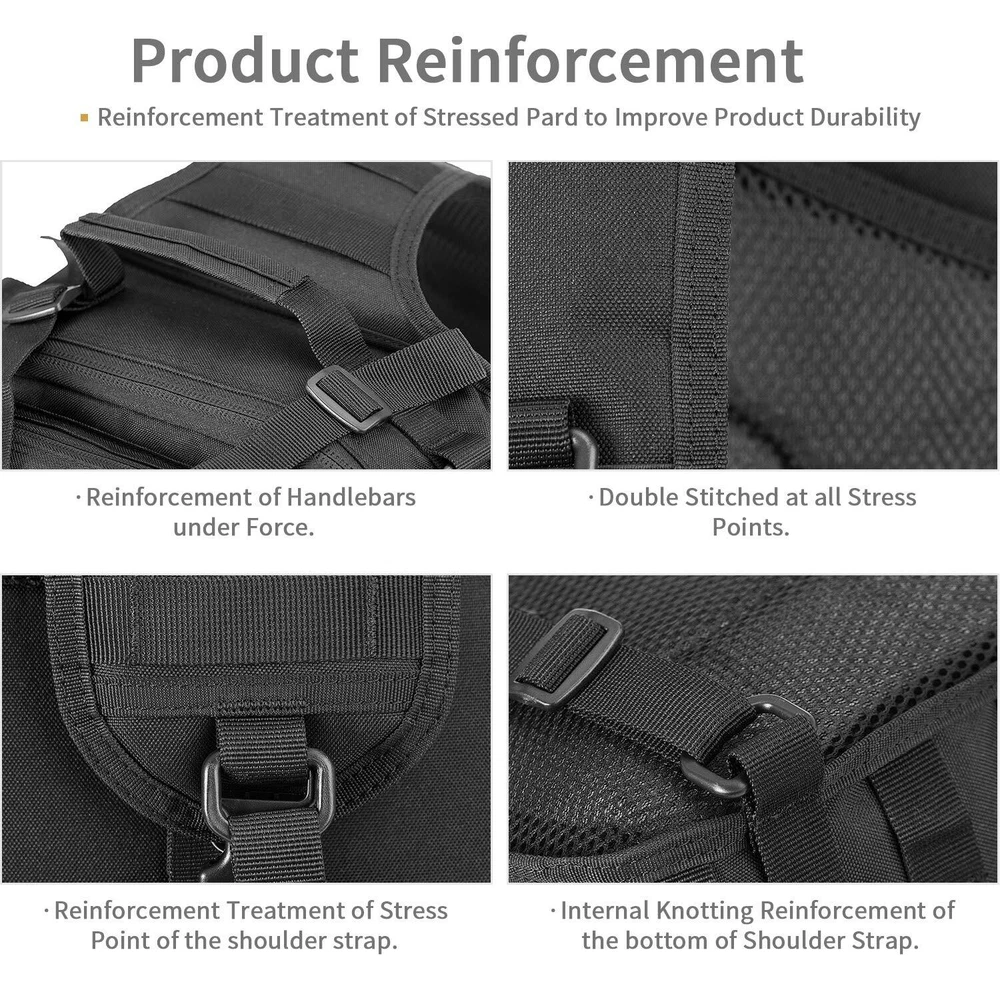 Please note that the waterproof rain cover is hidden inside the zipper pocket at the bottom of the sling bag. Open the zipper pocket on the bottom, you can find the waterproof rain cover. Come with 9 Pcs Accessories -- 1 x Water Bottle Pouch, 1 x USA Flag Patch, 6 x D-Rings Grimlock Locking, 1 x Waterproof Rain Cover. Please pay attention to the waterproof rain cover is hidden inside zipper pocket at the bottom of the backpack.Tactical sling pack with velcro in the concealed back compartment. Awesome as a pistol sling range bag for 1-2 handguns and lots of ammo or as tactical assault pack. Sling pack's size: 14 * 11.5 * 6.5 inch (H*W*D), enough for carrying 13"laptop,iPad, notepad, goggles, book, keys, wallet, cell phone, flashlight, gloves, water bottle, chargers etc on a daily basis. Tactical sling backpack has adjustable and comfortable single shoulder strap, and also has two smaller straps to help reduce the sway of the bag while moving as small military rover shoulder sling backpack.Heavy duty zippers and utility-style cord pulls, front load compression system-Y strap. Comfortable breathable padding back area, molle straps as molle tactical sling pack or edc bag. It's made of durable 600D polyster,water-resistant and durable.