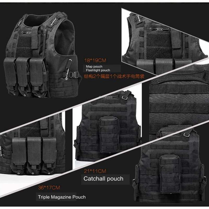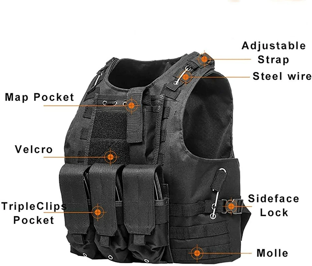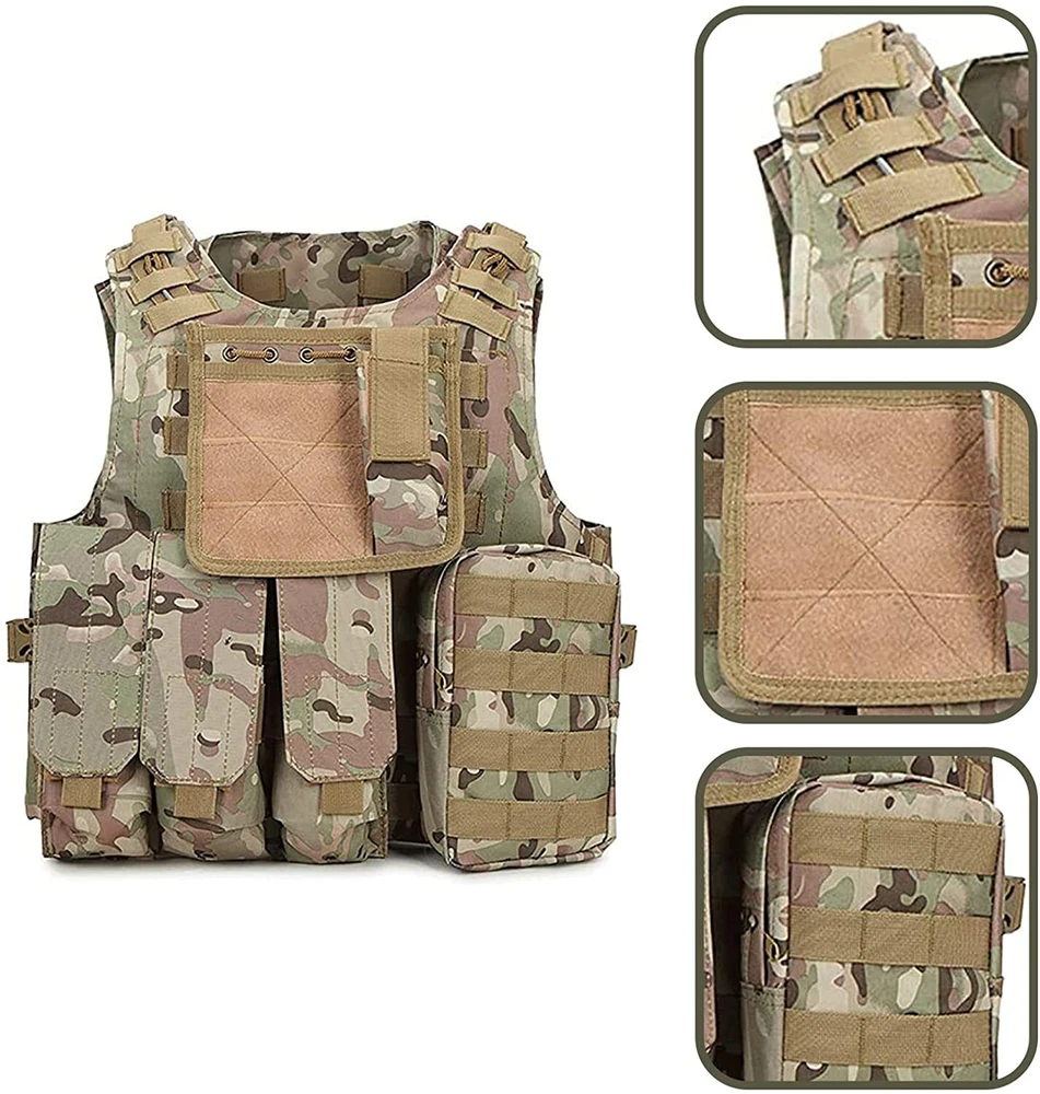 Product Description Features: 1. ADJUSTABLE: Size is for kids and slim person. Tactical vest is fully adjustable in girth, length and shoulder to a customized size through adjusting adhesive on sides. The tactical vest is adjustable via the adhesive of the shoulder part and the side part. Please make sure adjusting first before you wear. 2. MOLLE SYSTEM: Training vest is constructed with modular webbing for attaching additional camouflage material and pouches and all the pouches are detachable. 3. E ASY TO WEAR: Airsoft vest can be taken off over the shoulder and both sides quickly. Left and right sides can be adjusted for width via webbing. 4. HIGH QUALITY: Molle chest vest is durable and comfortable, stronger tensile strength and wear resistance. Only for games. 5. MULTIFUNCTION: The military vest is a great gift for outdoor jungle games, airsoft, paintball, hunting, secret service operations, training mission, battle games and military fans. Specification: Color : Black / Green / Tan / CP / ACU / Jungle Camouflage / Jungle Digital ... Material: High-density 600D Waterproof Polyester Product weight: 1.2400 kg Style: Camouflage/Field Game Size :(L x W x H): 52 x 45 x 10 cm / 20.47 x 17.71 x 3.93 inches. Package Included: 1x Tactical Molle Vest Airsoft Paintball Vest Note: The waistline can be adjusted by the adjustable strap at the side and the max perimeter is 112cm / 44 inches.