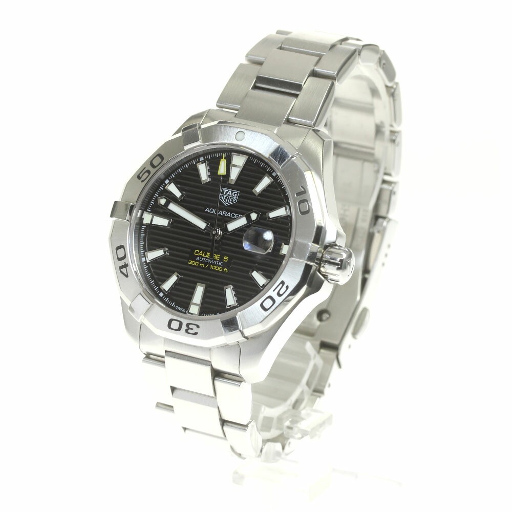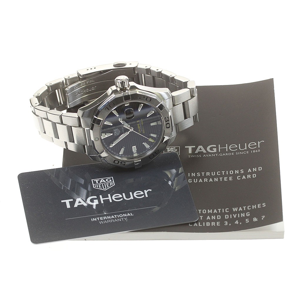 Tag Heuer Aquaracer Caliber 5 Automatic Men’s Watch BC Condition Key Features This pre-owned TAG Heuer Aquaracer Caliber 5 men's automatic watch features a stainless steel case and bracelet, with a black dial and date function. The case measures approximately 44mm, with a total wrist size of about 19.5cm. The watch has minor scratches and small dents on the glass, bezel, and bracelet, with some damage to the crown due to slipping during manual winding. The movement is accurate with a daily gain of about 7 seconds. Comes with warranty card and instruction manual. Please review photos for condition. Note: No returns or free repairs accepted. Item Specifics: - Brand: TAG Heuer - Model: Aquaracer Caliber 5 - Gender: Men's - Case Material: Stainless Steel - Band Material: Stainless Steel - Dial Color: Black - Movement: Automatic - Reference Number: WAY2010-0 - Serial Number: RQD3 - Features: Date - Case Size: Approx Specifications Brand Tag Heuer Country Japan Product Description Tag Heuer Way2010-0 Aquaracer Caliber 5 Date Automatic Men'S Warranty Included 8 Description If you have any questions or request about items, please feel free to ask us. Thank you! Shipping Shipping by FedEx, DHL, or EMS. International Buyers - Please Note: Import duties, taxes, and charges are not included in the item price or shipping cost. These charges are the buyer's responsibility. Please check with your country's customs office to determine what these additional costs will be prior to bidding or buying. Thank you for your understanding.