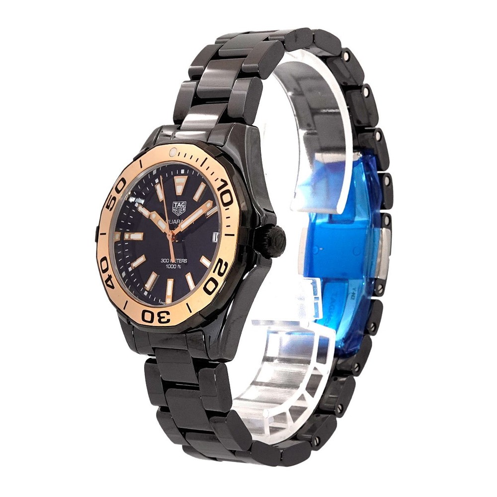 Tag Heuer Aquaracer Women’s Black Ceramic Watch 300m Water Resistant Pink Gold Key Features This is a Tag Heuer Aquaracer ladies' watch featuring a sleek black ceramic case with a rose gold bezel. It offers 300m water resistance, combining stylish design with practical functionality. The watch has a quartz movement, stainless steel and ceramic band, and a black dial. Dimensions are approximately 42mm height, 35mm width, and 11mm thickness, suitable for wrist sizes up to 19cm. The watch is in excellent condition with minimal signs of use, and the battery has been replaced for immediate use. Comes with original box, warranty, and manuals. Item Specifics: Brand: Tag Heuer Model: WAY1355.BH0716 Movement: Quartz Case Material: Stainless Steel, Ceramic Band Material: Stainless Steel, Ceramic Dial Color: Black Size: 42mm (height), 35mm (width), 11mm (thickness) Water Resistance: 300 meters Specifications Brand Tag Heuer Country Japan Product Description Tag Heuer Aquaracer Combi Way1355 Women'S Watch Date Black Ceramic Pg Pink Gold Description If you have any questions or request about items, please feel free to ask us. Thank you! Shipping Shipping by FedEx, DHL, or EMS. International Buyers - Please Note: Import duties, taxes, and charges are not included in the item price or shipping cost. These charges are the buyer's responsibility. Please check with your country's customs office to determine what these additional costs will be prior to bidding or buying. Thank you for your understanding.