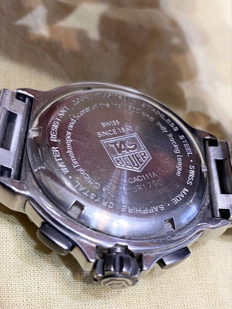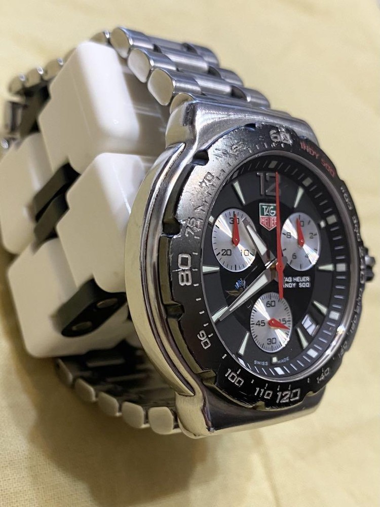 Description TAG HEUER INDY 500 with chronograph function - Brand: TAG HEUER - Model name: INDY 500 - Color: Black/Silver - Material: Stainless steel - Features: Chronograph function - Condition: Scratched - Size: Approx. 43mm Overhauled about 3 years ago. Wrist circumference: approx. 18cm Extra links included Many small scratches from daily use, but movement is perfectly normal The crown can no longer be retracted (cannot be retracted) It had no effect on use, so we used it without worrying. If you are concerned, we recommend a separate repair. Only the main body and extra links, no other accessories. Discount on multiple purchases. Shipping FedEX is basically used, but DHL, EMS, or small-packet may be used depending on the region and product content. Arrival dates are approximate and most items arrive earlier than that. International Buyers - Please Note: Import duties, taxes, and charges are not included in the item price or shipping cost. These charges are the buyer's responsibility. Please check with your country's customs office to determine what these additional costs will be prior to bidding or buying. Thank you for your understanding. Other items are in stock. If you purchase at the same time, the shipping fee will be discounted, so please contact me.