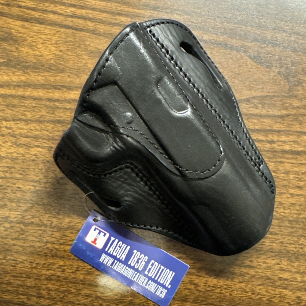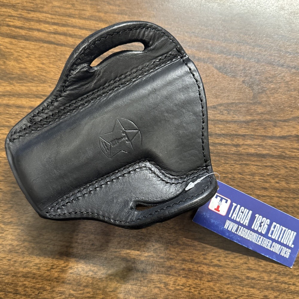 The Tagua Texas Series Right-Handed OWB holster is designed for the 1911 5" pistol. Made of black leather, it features a Level 1 retention system with a positive forward cant for secure carry. This field/hunting holster is lightweight, weather-resistant, and water-resistant, suitable for shooting activities. The holster attaches to the belt and offers multiple carry positions at 2 o'clock, 3 o'clock, 4 o'clock, or 5 o'clock for convenient access. Crafted in Paraguay, this Tagua holster is specifically tailored for right-handed shooters. Made for Colt, Kimber, Springfield Armory, Smith & Wesson, Ruger, Tisas, Dan Wesson, NightHawk Custom, Wilson Combat, Les Baer,