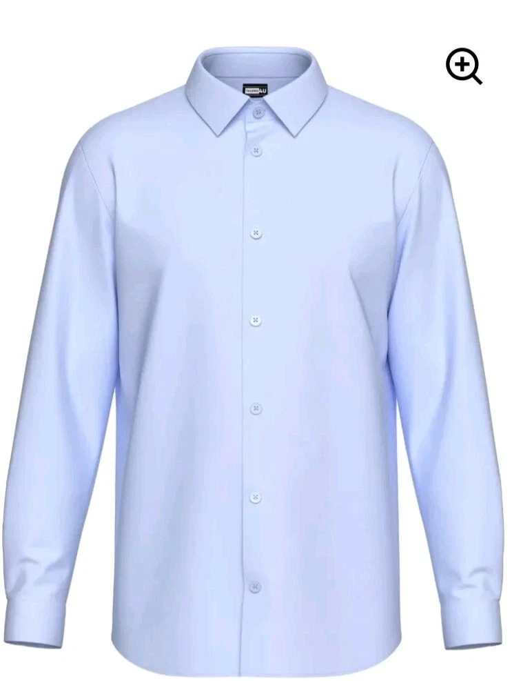 This tailored dress shirt in a sky blue color features a solid pattern with a collared neckline and button closure. Made from 82% nylon and 18% spandex, this shirt offers a comfortable 4-way stretch and breathable fabric wash. With a spread collar style, barrel cuffs, and a size of 2XL, it is suitable for various occasions such as travel, parties, or formal events. The machine-washable shirt is designed for men's wear and is branded as "tailored 4U," providing a stylish and comfortable option for work or casual wear.