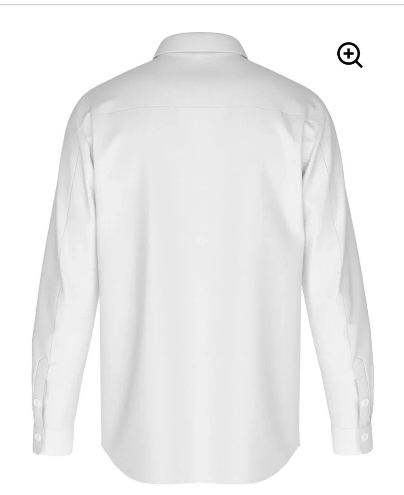 This tailored men's dress shirt in white features a solid pattern with a collared neckline and button closure. Made of 82% nylon and 18% spandex, it offers a comfortable 4-way stretch and breathable wear. The long sleeves with barrel cuffs and spread collar add a touch of formal appeal, suitable for various occasions such as travel, weddings, parties, and work. The shirt is machine washable and available in size M from the brand tailored 4U.