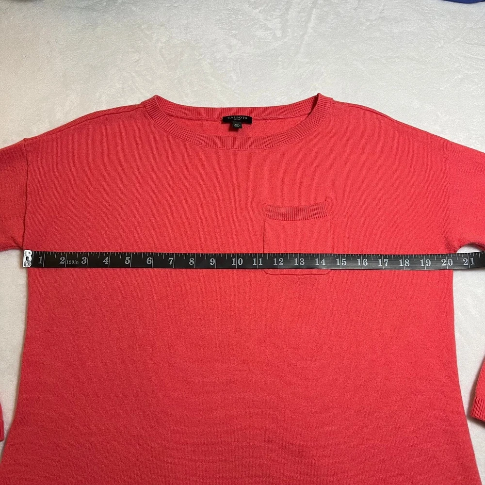 Talbots Cotton Wool Blend Knit Sweater Size Medium Petite CONDITION: Pre-Owned. Gently Used Condition. FLAWS/ALTERATIONS: There is light pilling. COLOR: Coral Pink (The pictures are making the sweater darker, but its a lighter coral pink) SIZE: Women’s Size Medium Petite DETAILS: Crewneck Long sleeve Single pocket Knit Luxury fabric blend Soft cozy fabric Stretch MEASUREMENTS: Chest: 20.5" Full Length: 23.5" **All measurements are approximate and are taken flat** MATERIAL: 65% Cotton 30% Wool 5% Cashmere Bundle 2 OR MORE items to save more! Reasonable offers are welcomed! TAGS: Casual Comfy All Season Travel Vacation Contemporary Minimalist