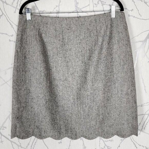 Talbots Gray Herringbone 48% Wool Blend Scalloped Pencil Skirt Women's 12 Waist: 33" Length: 20" Good used condition: no rips, marks or stains.