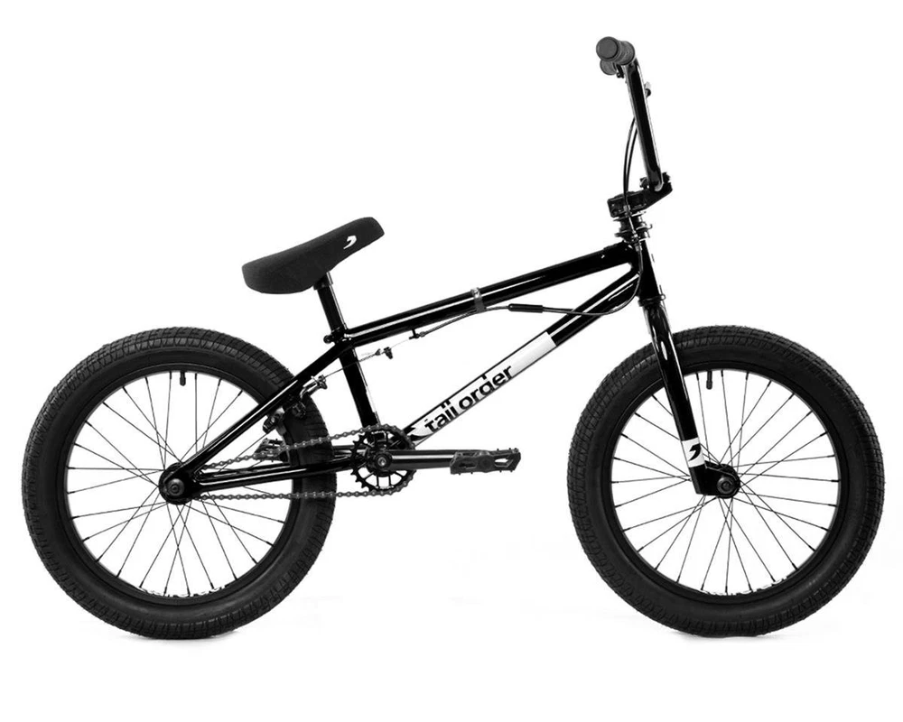 Tall Order Ramp 18" BMX Bike Description: The Tall Order Ramp 18" bike is a solid park bike for those not quite ready to get on a full size BMX. Aimed at riders in the ballpark of 3'10" to 4'8" in height (generally 9-12 year olds) its the perfect entry into the world of BMX. This stylish looking lightweight bike features a fully sealed rear cassette hub rarely seen on bikes in this price range and includes a gyro brake system, allowing young rippers to learn bar spins and tailwhips. NOTE: The photos show the brake lever on the left hand side (standard in the UK). Our models have the lever on the right hand side , as is standard in the United States. Specifications: Frame: 100% Hi-Ten Steel With Stamped Logo Top Tube Gusset Fork: 100% Hi-Ten Steel With Tapered Fork Legs Headset: A-headset, unsealed Stem: Alloy Top Load (50mm Reach) Bars: 2-piece, high-tensile steel (8” Rise) (24” Wide) Grips: Flangeless (130mm) Cranks: 3pc tubular 4130 chromoly (152mm Length) Bottom Bracket: USA Unsealed Pedals: Tall Order Catch Pedal, Plastic unsealed Sprocket: Steel (25T) Chain: 410 Front Hub: Alloy Loose Ball (3/8" axle) Rear Hub: Fully Sealed, Cassette Driver: 9T Front Rim: Alloy, single-wall (28H) Rear Rim: Alloy, single-wall (28H) Front Tire: 18 x 2.3" Rear Tire: 18 x 2.3" Seat: 1pc seat/post combo Seat Post: Alloy Seat Clamp: Integrated Brake Lever: Alloy 2 Finger Brakes: U Brake Gyro: Installed Gyro Tabs: Installed Brake Mounts: Welded Extras: Soft compound brake pads Color: Black Weight: - Geometry: Toptube Length: 18.5" Chainstay Length: 12.25" Headtube Angle: 75° Seattube Angle: 71° Bottom Bracket Height: 10.6" Standover: 7.4" Recommended Sizing Guide: 3'10" to 4'8" For assistance building your new bike, please check out our tech help section here for instructions and tips on how to build your bike to ensure it is safe. Dan's Comp recommends riding with a helmet to protect that brain. Shop our selection of freestyle helmets here. Need help finding the right bike for you? Not sure what size would suit you best? Check out our BMX buyers guide video below! Note: To ensure that every component on your bicycle is working properly, Dan's Comp recommends that all bikes be assembled by a qualified mechanic. Improper assembly of your bicycle may lead to premature wear or failure of individual components such as headsets, crank assembly and wheels. Failure to do so may void the manufacturer warranty. About Us | View Store