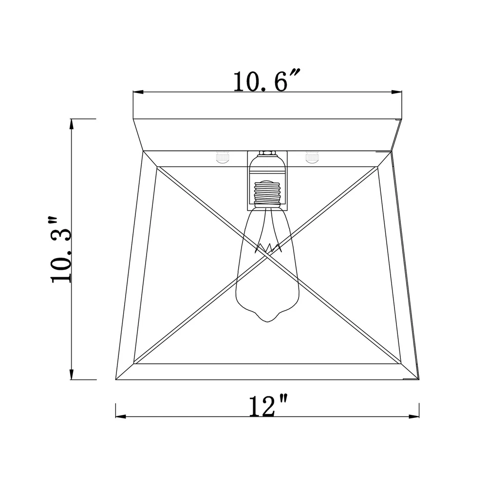 Description:This 1-light metal cage flush mount is an eye-catcher. The farmhouse-inspired light fixture features an open-cage frame composed of faux-wood with a brown oak finish. An X-brace design recalls old barn doors and farmhouse gates as it stretches across each side of the frame. The exposed bulb allow for maximum light flow to illuminate any room.Features:Lighting Type: Flush MountFixture Finish: Imitation Wood Grain+Oil Rubbed BronzeShade Material: MetalSetting: IndoorNumber of Lights: One (1)Bulb Type: (1) E26 60W (not included)HardwiredDimensions:Overall: L 12 x W 12 x H 10.3 inchesFixture: L 12 x W 12 x H 10.3 inches Free Shipping Over $49.99* Details Tamara Oil Rubbed Bronze 1-Light Open-Cage Metal Flush Mount Product Description: Description: This 1-light metal cage flush mount is an eye-catcher. The farmhouse-inspired light fixture features an open-cage frame composed of faux-wood with a brown oak finish. An X-brace design recalls old barn doors and farmhouse gates as it stretches across each side of the frame. The exposed bulb allow for maximum light flow to illuminate any room. Features: Lighting TypeFlush Mount Fixture FinishImitation Wood Grain+Oil Rubbed Bronze Shade MaterialMetal SettingIndoor Number of LightsOne (1) Bulb Type(1) E26 60W (not included) Hardwired Dimensions: OverallL 12 x W 12 x H 10.3 inches FixtureL 12 x W 12 x H 10.3 inches