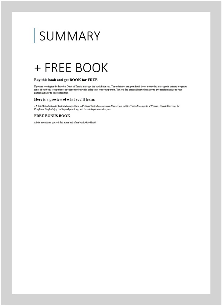 Tantra Massage : The Practical Guide for Sensual Tantric Massage for Two, Paperback by Allison, Willie T., ISBN 1540844536, ISBN-13 9781540844538, Brand New, Free shipping in the US + FRE Buy this book and get BOOK for FREE If you are looking for the Practical Guide of Tantric massage, this book is for you. The techniques are given in this book are used to massage the primary erogenous zones of our body to experience stronger emotions while being close with your partner. You will find practical instructions how to give tantric massage to your partner and how to enjoy it together. Here is a preview of what you'll learn: - A Brief Introduction to Tantra Massage- How to Perform Tantra Massage on a Man - How to Give Tantra Massage to a Woman - Tantric Exercises for Couples or SinglesEnjoy reading and practicing, and do not forget to receive your FREE BONUS BOOK All the instructions you will find at the end of luck!