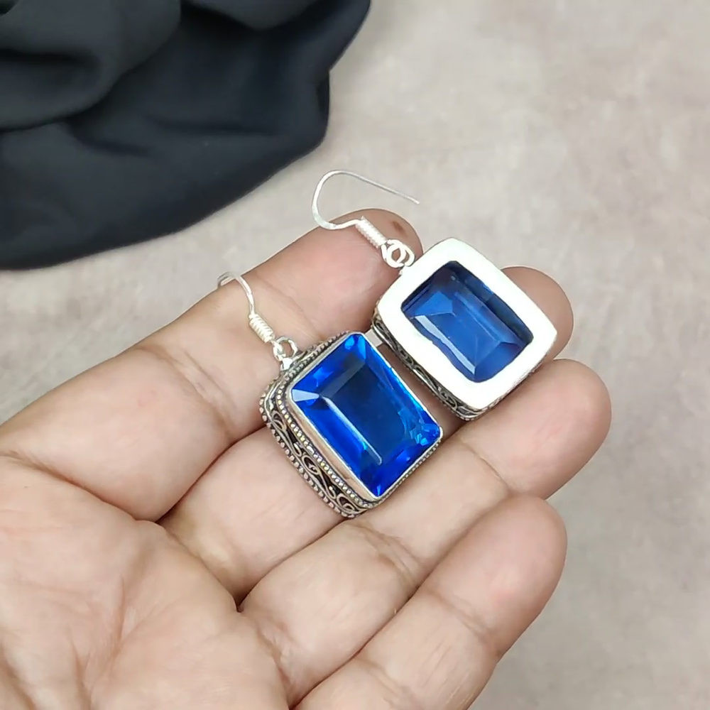 Aquamarine Dangle Earrings in 925 Sterling Silver Handmade Gift Jewelry