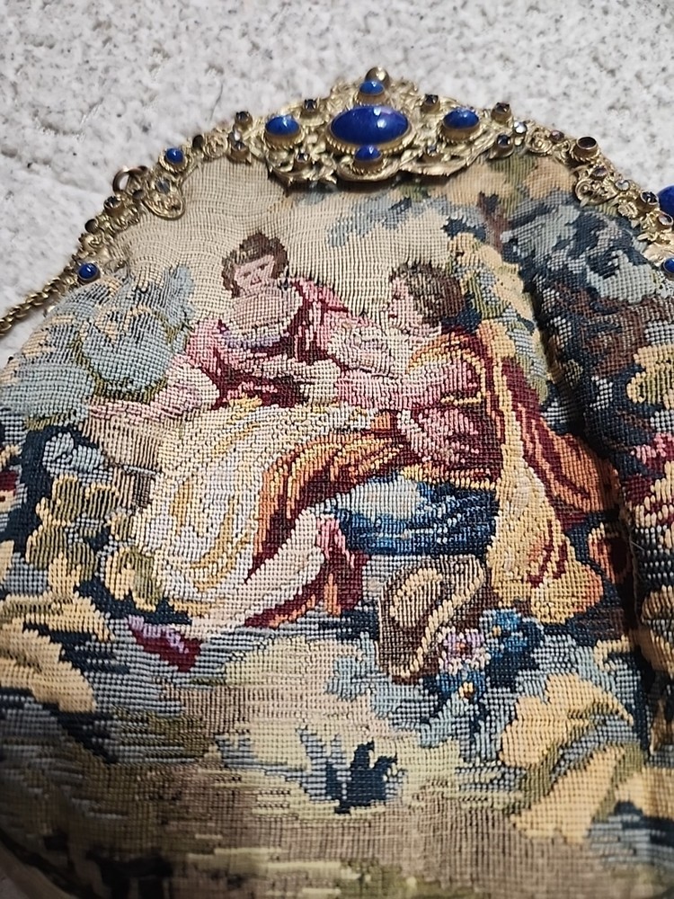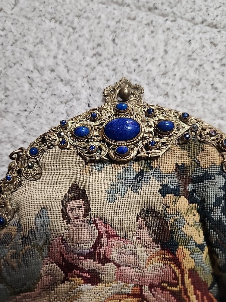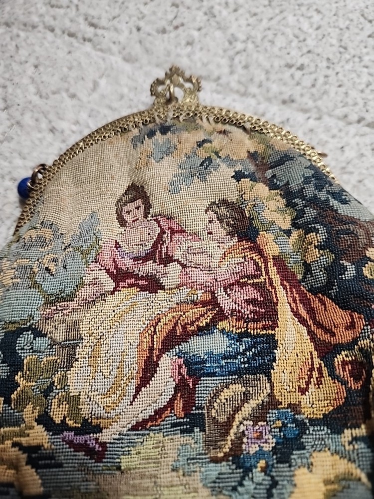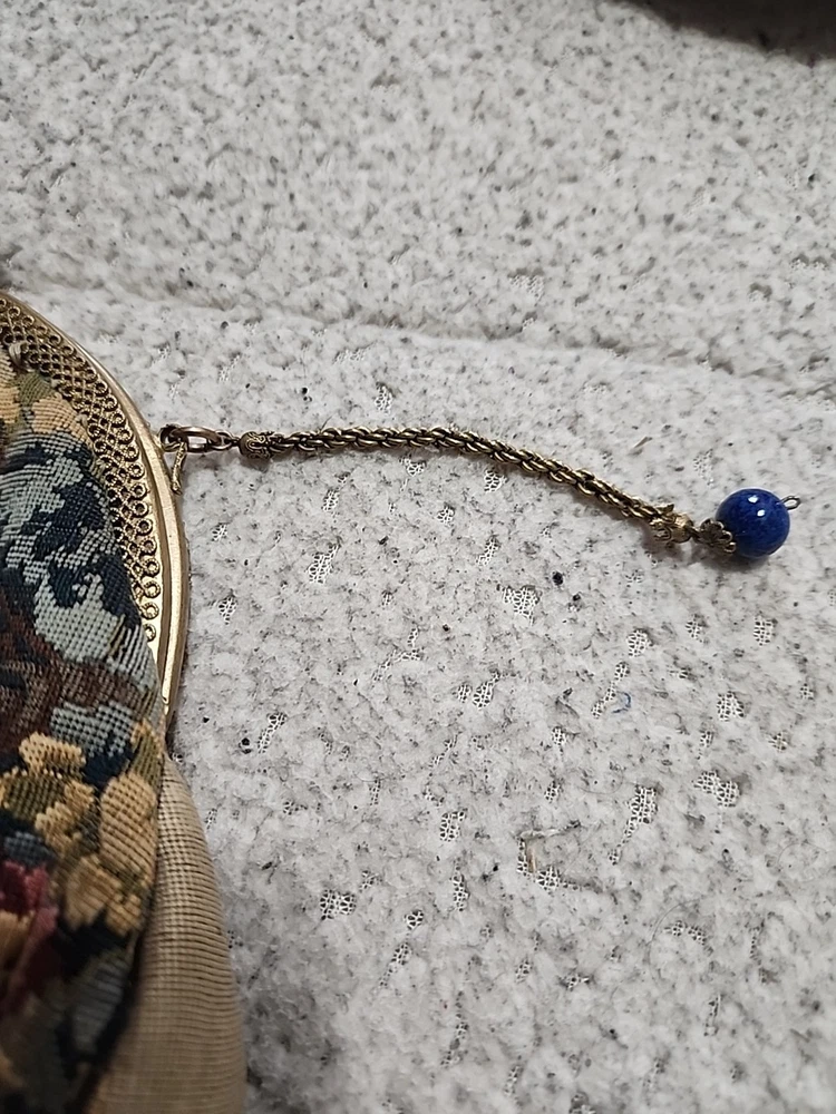 $ 52.81920s Antique Beaded Purse Hand Bag Brass Frame Chain Flapper Design