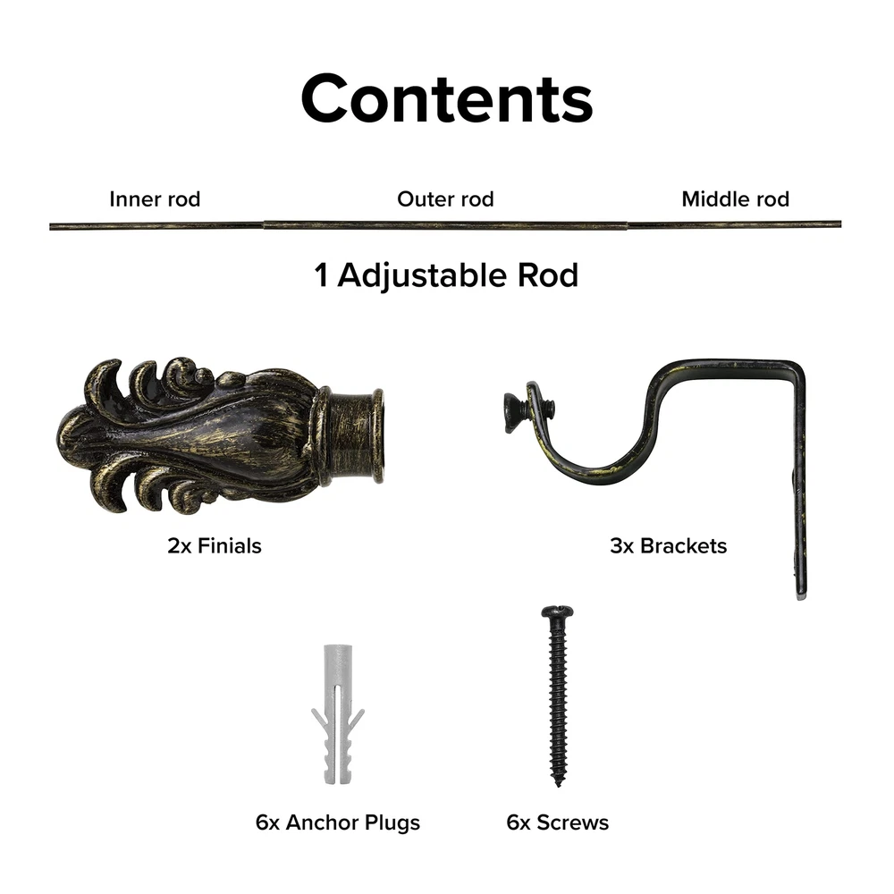 STRONG ROD SET: Strong metal rod of 3/4 inch diameter with adjustable length structure, extends from 44 to 108 inches. Imported premium heavy-duty metal material to ensure long-term use, more durable than most rivals. GREAT FOR TAPESTRIES: This decorative rod with a thick metal tube is capable of handling heavy art and fabrics; can hold up to 22 pounds. Art Gallery quality, ideal for home or business. HIGH QUALITY FINIAL: This decorative rod pairs perfectly with various home styles (simple, retro, modern, rustic, industrial, contemporary etc.) PERFECT GIFT: Making it a perfect practical gift for family or friends. Ideal as a housewarming gift Each rod set was carefully checked for quality and well-packaged. EASY TO INSTALL: tapestry rod set comes ready to hang with all the mounting hardware and instruction. Adjustable curtain rod brackets sits 1” from the wall to provide an integrated look to your tapestry. MONEY BACK WARRANTY: We use and test our rods for quality assurance. If you have any issue just message us for any question or concern. We’ll make sure you are satisfied.