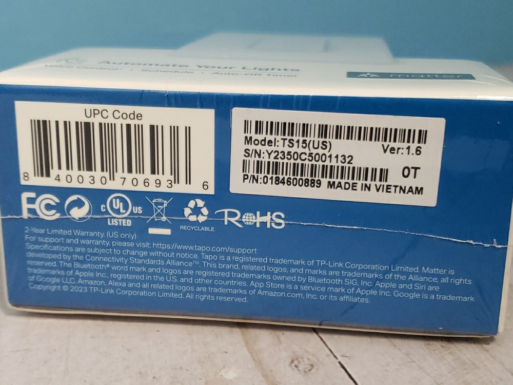 TP-Link Tapo Smart Light Switch, Matter Compatible, Single Pole 1-Pack TS15 NEW