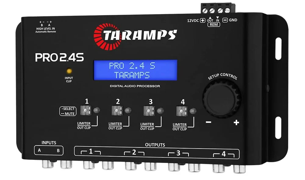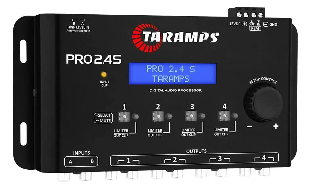 Free eBay listing template designed by dewiso.com Taramps Digital Audio Processor Pro 2.4s Equalizer 4 channels Band Equalizer: It has 15 bands of equalizaon, with aenuaon /boost of up to 12dB, at the center frequencies defined in the ISO standard (25 to 16KHz, 2/3 octave). Acts simultaneously on inputs A and B. Input Parametric Equalizer: EQ with 1 band and adjustable parameters, acts simultaneously on inputs A and B. Crossover: Set the high pass (HPF) and low pass (LPF) filters of selected output way. The cutoff frequencies could be set from 10Hz to 22KHz, and are available some kinds of filters (Buerworth, Bessel, Linkwitz Rilley) in different slopes (-6, -12, -18, -24, -36 e -48dB/Octave). Output: Set the level for each output way. Allow apply up to +15dB gain or -45dB attenuation. Presets EQ: The Pro 2.4S has 12 preset equalizers. Select the music style and press the encoder center to apply the equalizaon curve: FLAT, LOUDNESS, BASS BOOST, MID BASS BOOST, TREBLE BOOST, POWERFUL, ELECTRONIC, ROCK STYLE, HIP HOP STYLE, POP MUSIC, VOCAL, COMPETITION. Features and further details PRO 2.4-S MAIN SPECS Resolution 24bits Sampling Rate 48KHz Input Channel 2 Output Channel 4 IN / OUT Routing A, B, A+B General GAIN Adjustment -80 to 0dB Output GAIN Adjustment 45 to +15dB Input Impedance (RCA) 10K Ohm Input Impedance (High Level) 50 Ohm Output Impedance 47 Ohm MAX Input Level (RCA) 5,9Vpp (2,1V RMS) MAX Input Level (High Level) 28Vpp (10V RMS) MAX Output Level 5,9Vpp (2,1V RMS) Frequency Response (-1dB) 10Hz to 22KHz Total Harmonic Distor. 0,01% Signal / Noise Radio >90dB Contact us We can be contacted at any time through eBay messages if you have any questions, comments or product requests. We will respond to you within 24 hours and do our best to help you out! We encourage our customers to contact us with any questions or concerns! We'd like to be sure you are completely satisfied with your purchase.