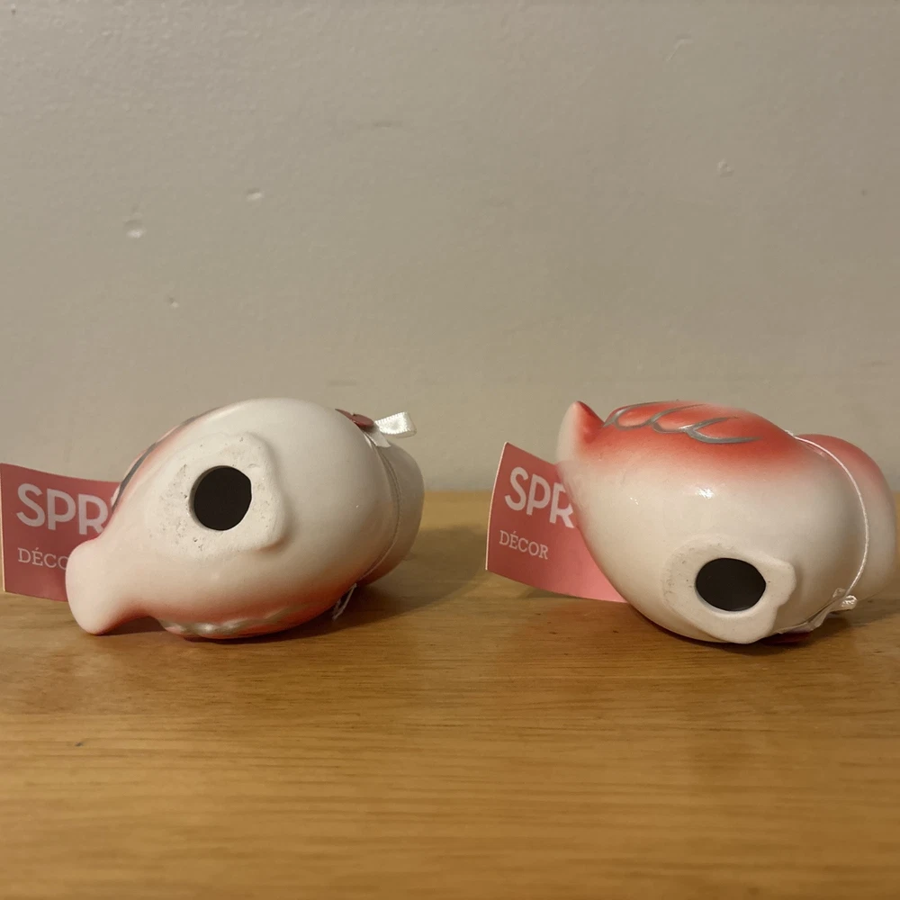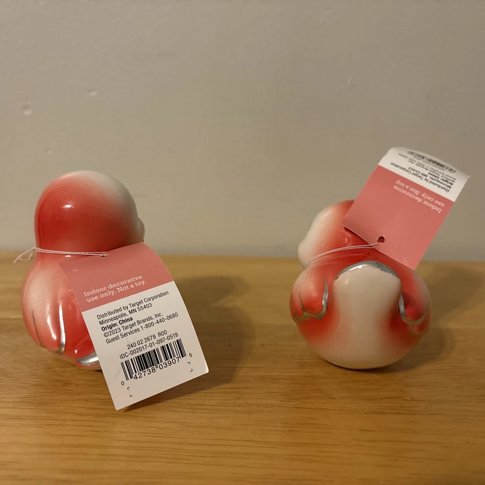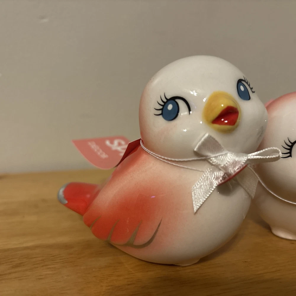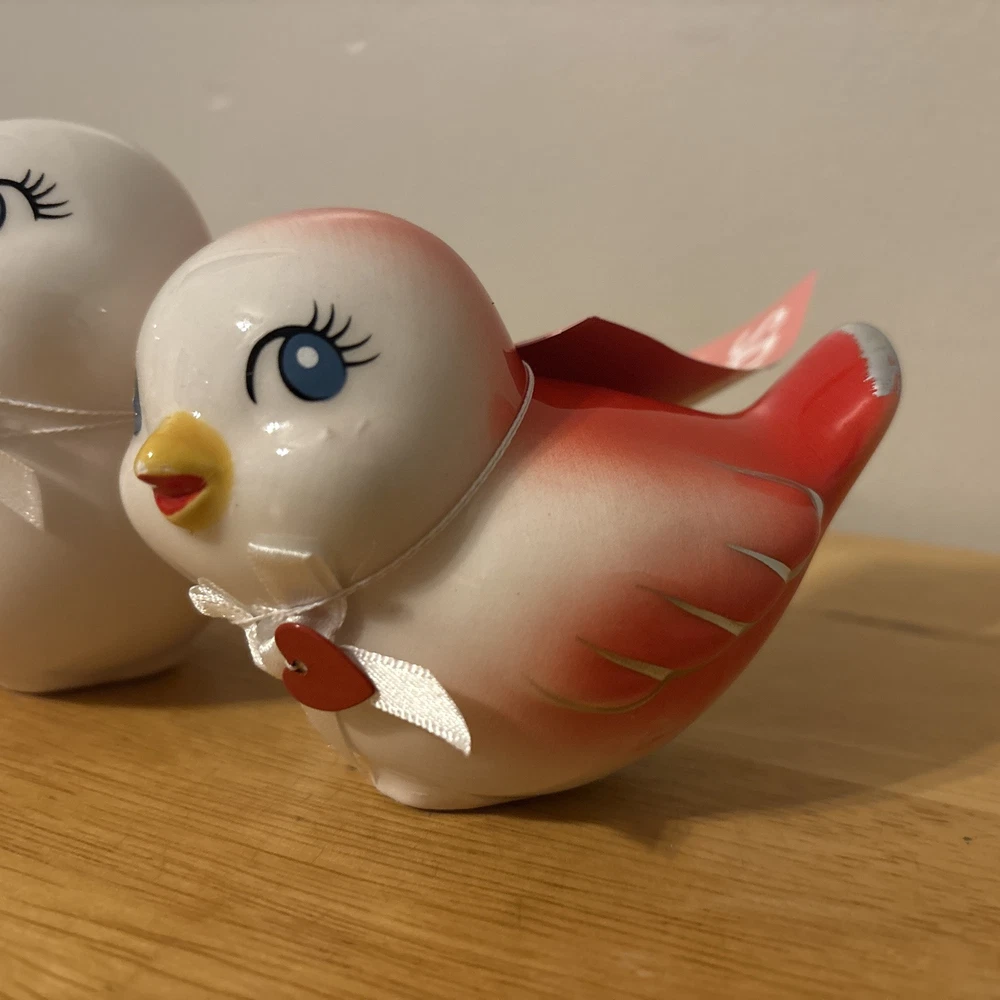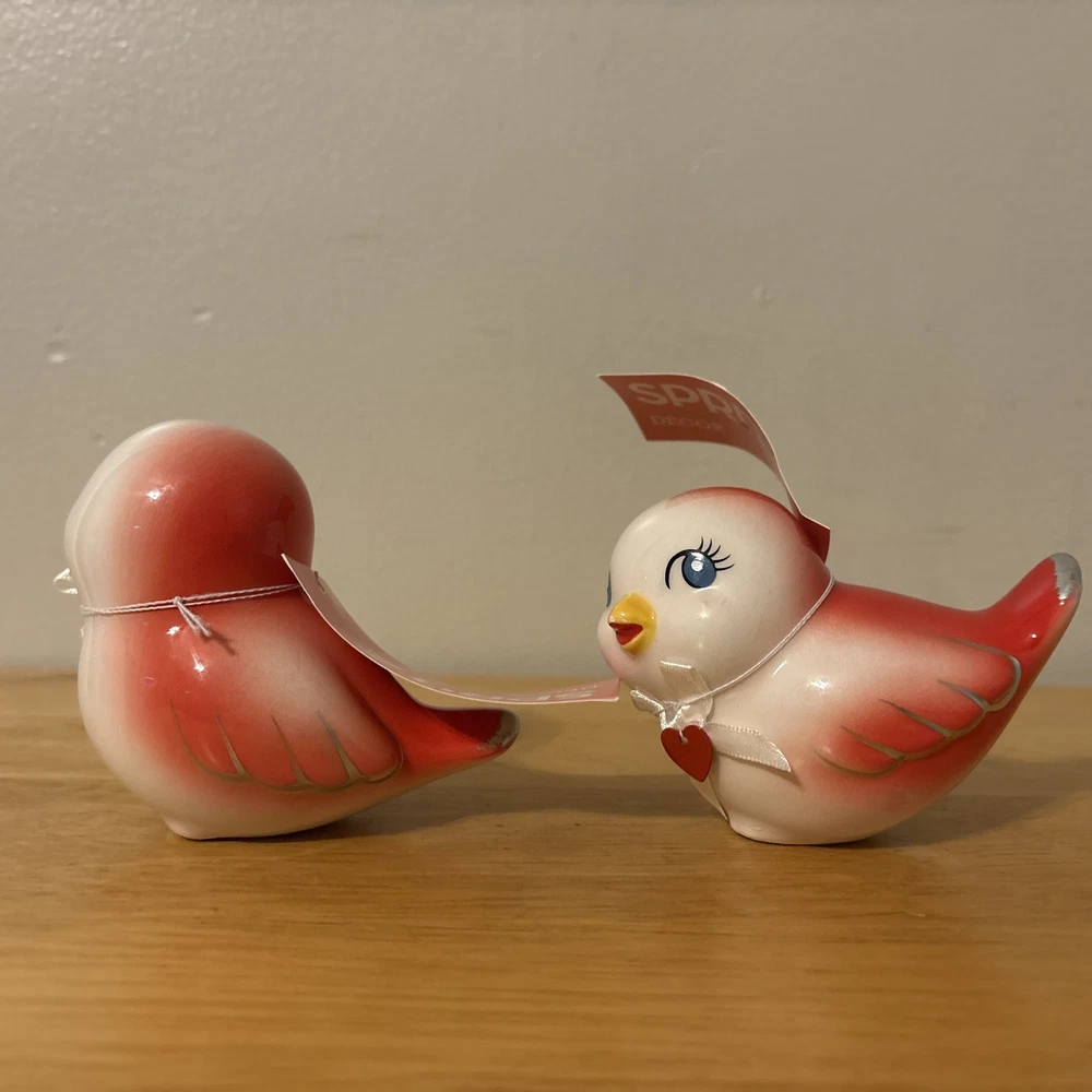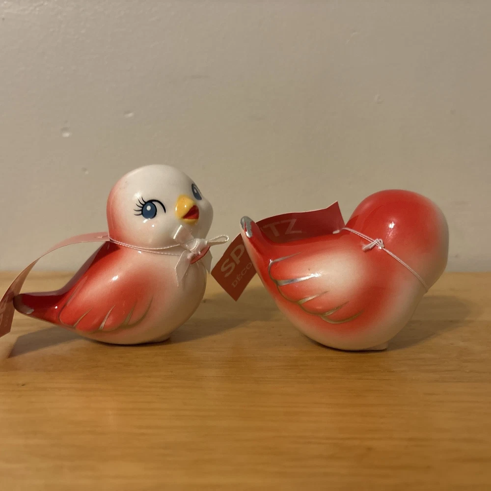 Celebrate Valentine's Day with the charming Target Spritz 2024 ceramic figurine set. These adorable love birds, finished in a classic red and white color scheme, are a delightful addition to any festive decor. Each bird stands at a petite 3.25 inches, making them an ideal accent for smaller spaces or as part of a layered display. Crafted with care, this set of two brings a touch of retro style to your home. From the Spritz Valentine's Day collection, these birds are a modern treasure from the 21st century, sold in their original unit quantity of two. Whether for personal enjoyment or as a thoughtful gift, these love birds are sure to enchant.