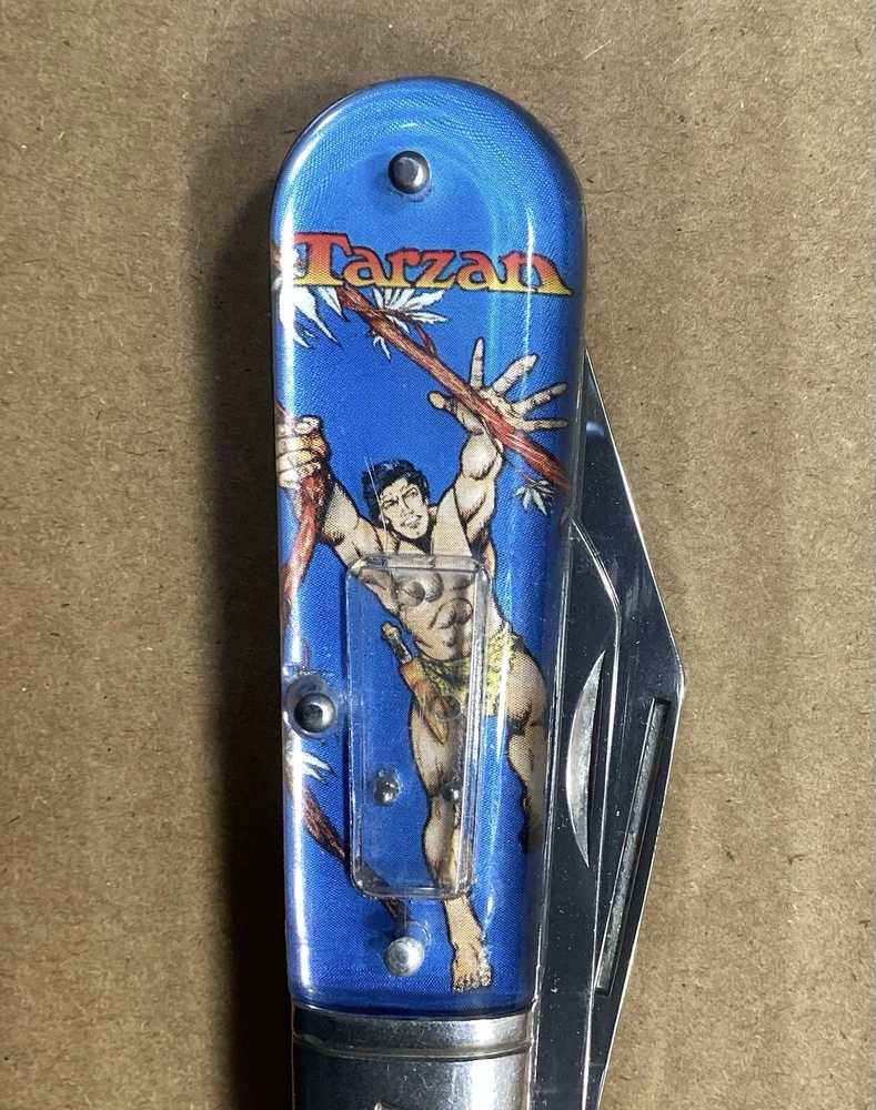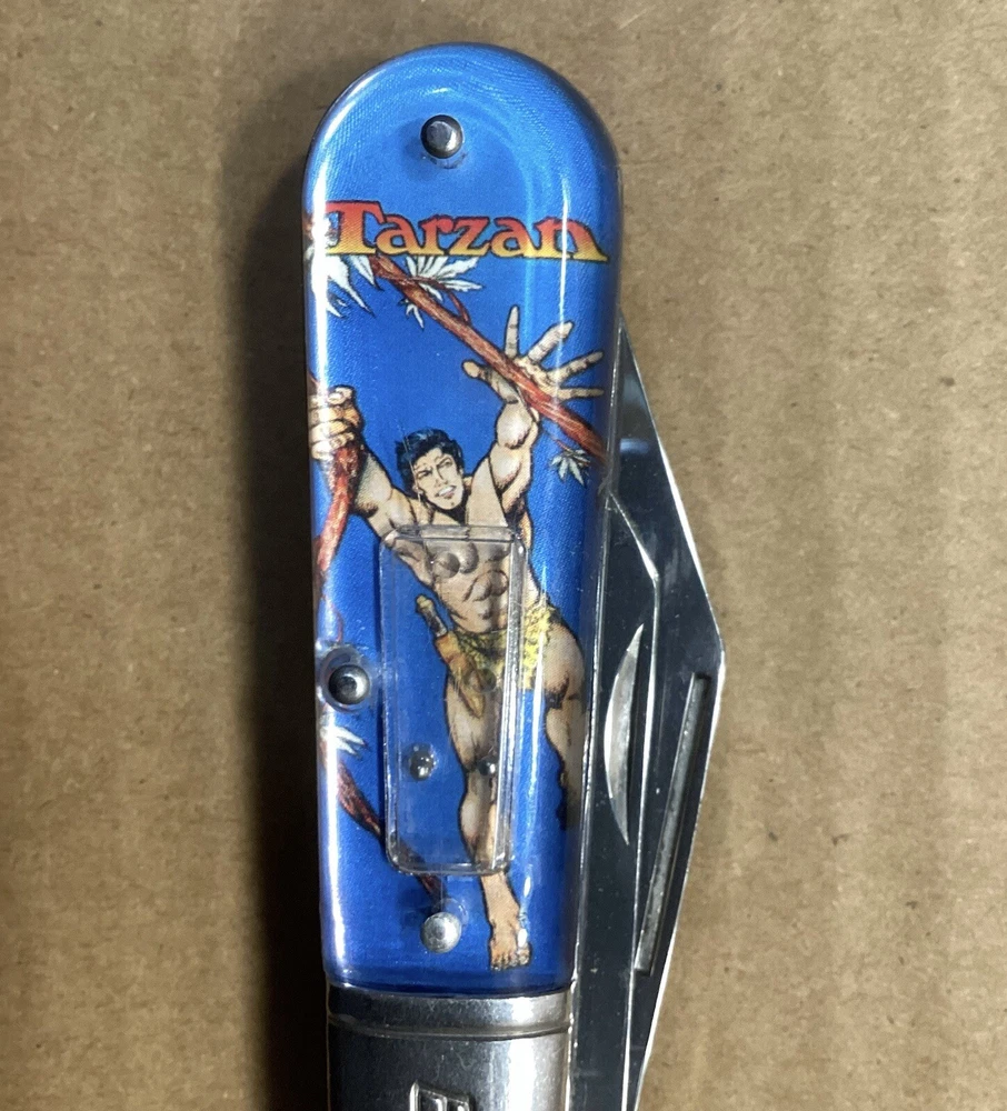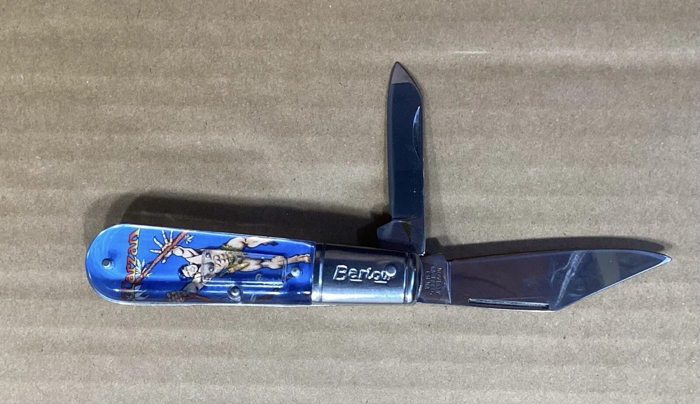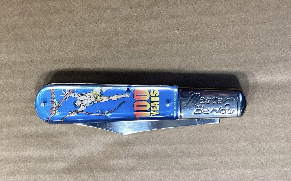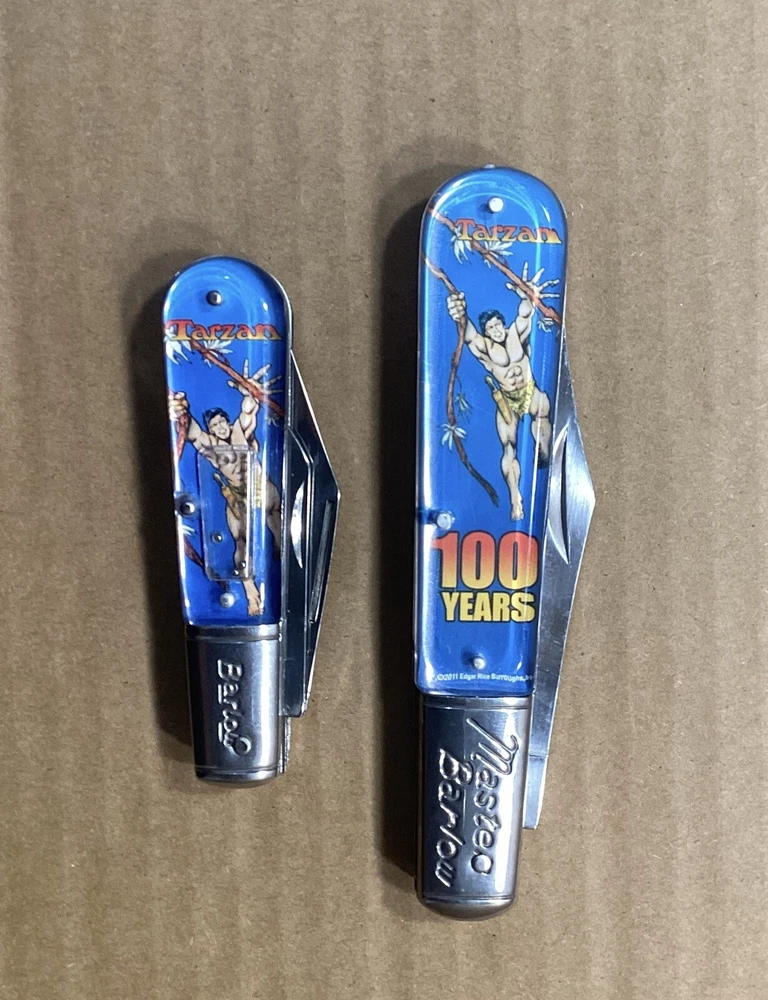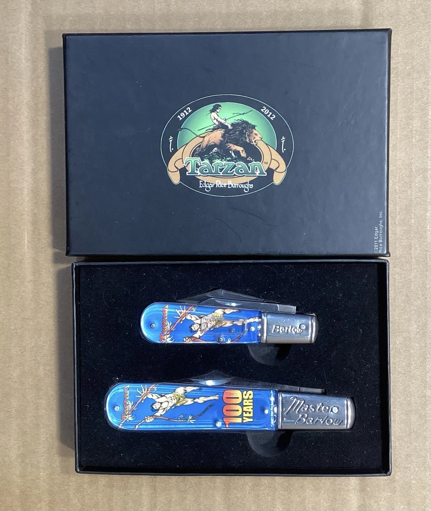 You are purchasing a vintage pair of Tarzan Pocketknives celebrating Tarzan’s 100 th Anniversary, 1912-2012 in the original box produced by Barlow & Master Barlow. The Tarzan set includes two pocket knives, one is a Master Barlow with a single blade, the smaller knife is Barlow with two blades and has a little ball type game in the handle. The Tarzan knife set is in unused mint condition in the original box. The Tarzan knife set has been displayed in a Tarzan collection since it was purchased new. Please refer to photos as they are an important part of the description and ask any questions before purchasing. Please check my other items offered on e-Bay. Yes, I do combine shipping! Payment would be appreciated within 4 days. I will gladly combine items to save on shipping. International bidders please check shipping costs before bidding. Items will be shipped using eBay's Global Shipping Service.