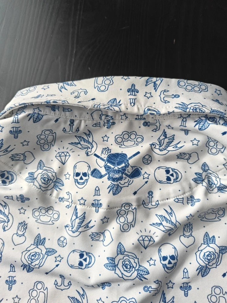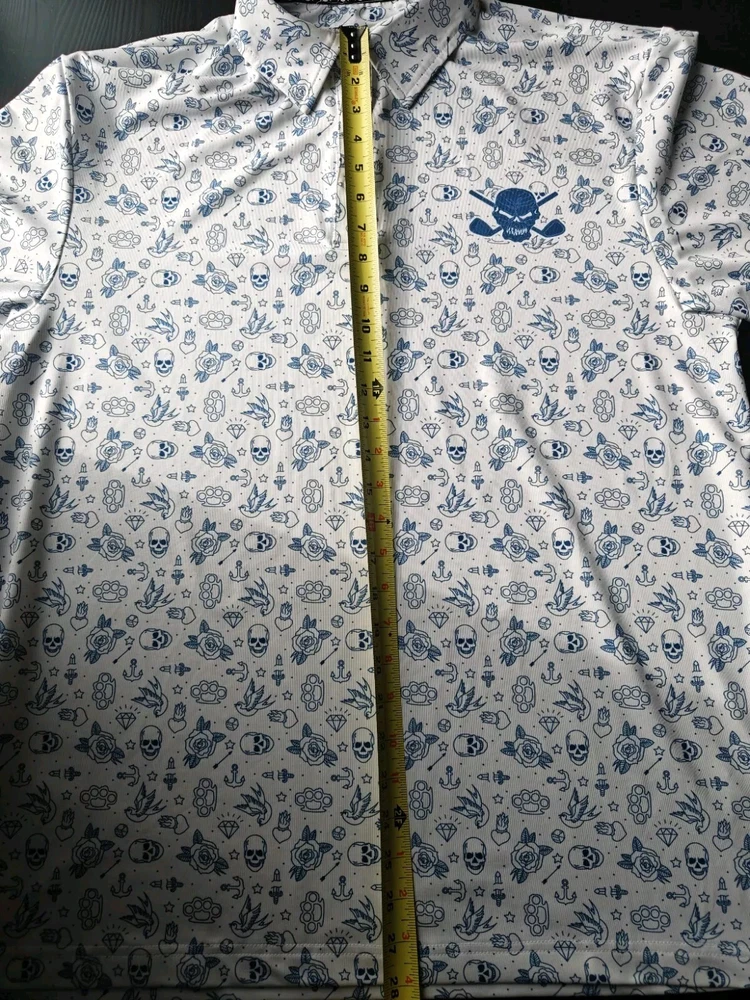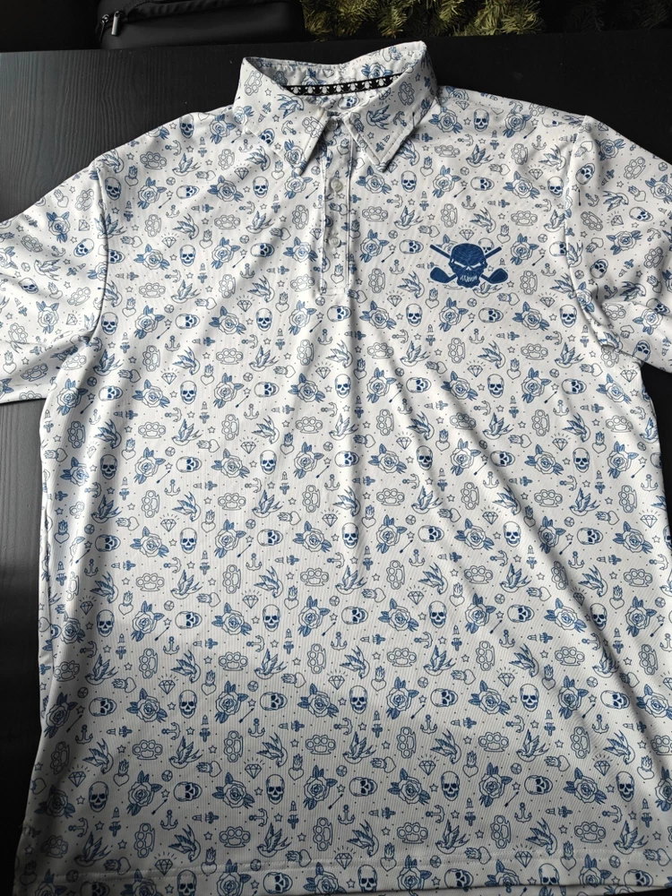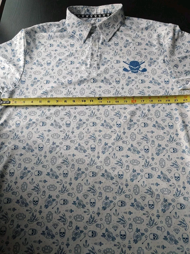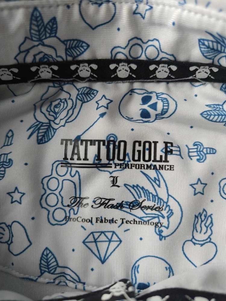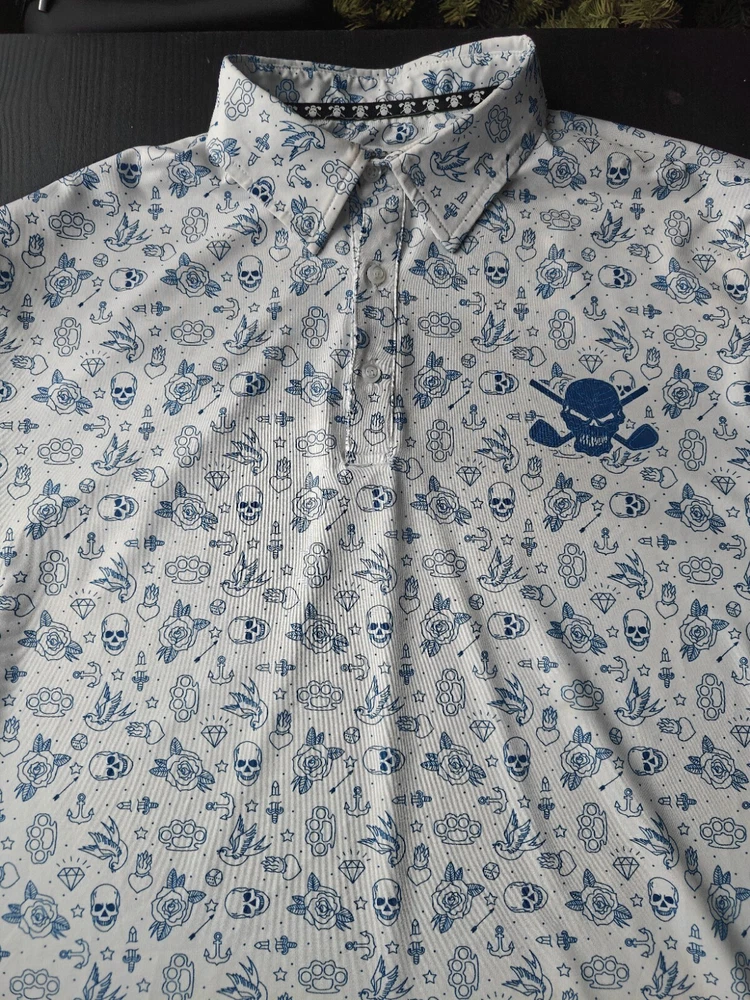 Tattoo Golf Shirt Mens Large All Over Print Skull Flash Series Performance Polo