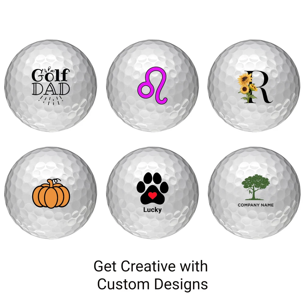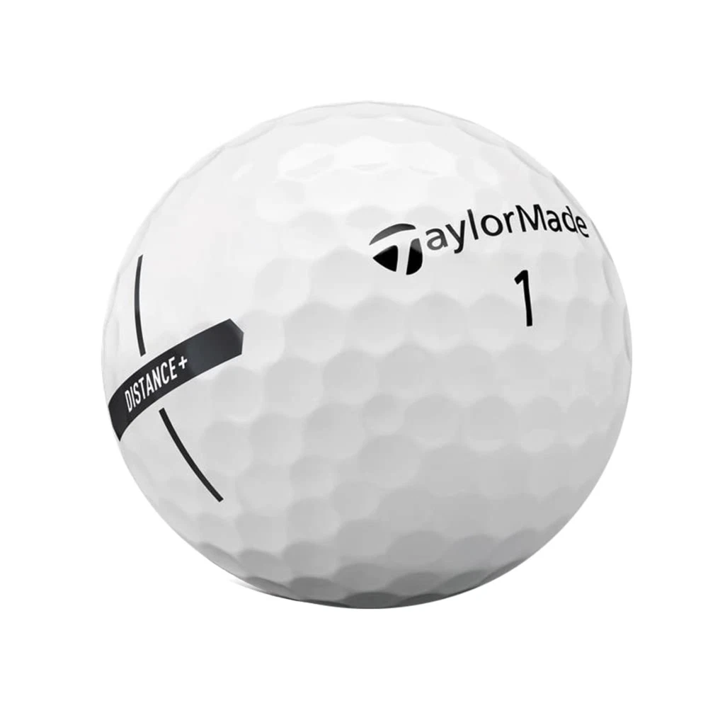 Create a personalized TaylorMade Distance + golf ball to give yourself, or your favorite golfer tour level performance - 12 pack Please note that the maximum imprint size for custom balls is 7/8" diameter. TaylorMade Distance + offers high-velocity performance for distance on all shots. Combining a REACT Speed Core and high-speed, low-drag aerodynamics, golfers will experience a golf ball designed for speed. TaylorMade Distance + provides ultra-soft feel with a two-piece construction and 77 compression, designed to maximize your ball speed. A 342 aerodynamic dimple pattern is designed to reduce drag and promote fast ball speeds off the tee.