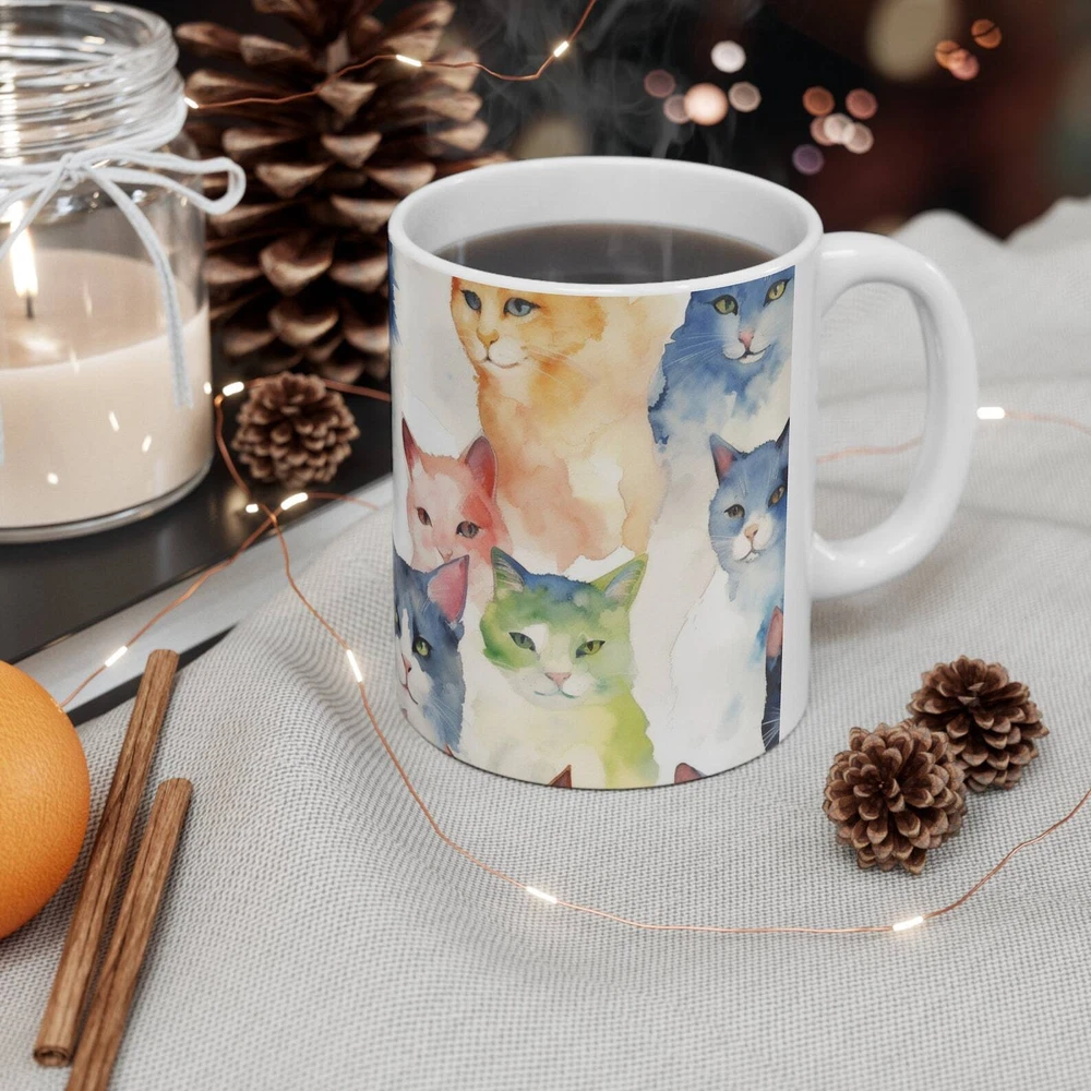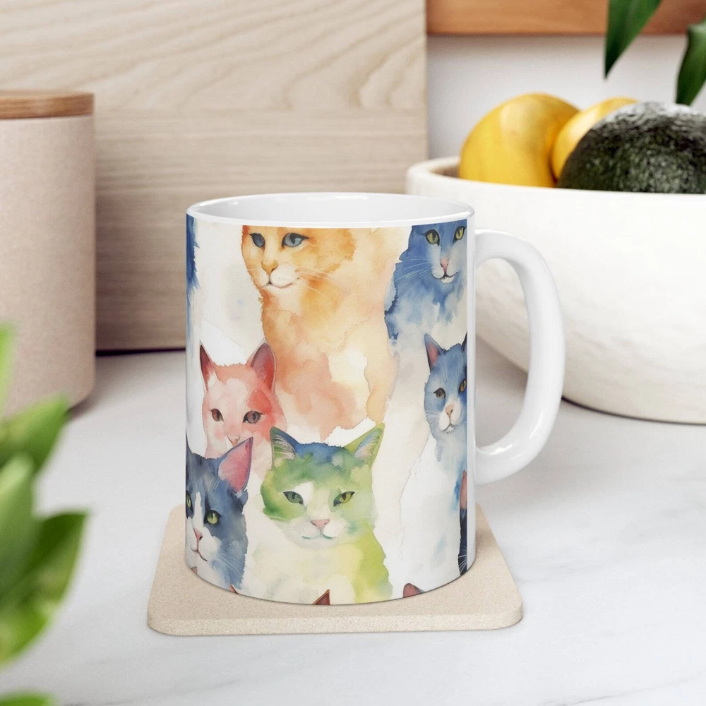 Cats Cats And More Cats Ceramic Mug 11oz Product Details.. This high quality 11oz. ceramic white mug has a premium hard coat that provides crisp and vibrant color reproduction sure to last for years. Perfect for all hot & cold beverages. The highest quality printing possible is used. It will never fade no matter how many times you wash it. Material: 100% Ceramic. Print both sides. Dishwasher and Microwave Safe. High Gloss + Premium White Finish. Printed in the U.S.A. Personalized & Custom. We support personalized and custom mug to add custom, when placing an order, you can add notes to the "order note" in shipping address section. Also you can contact us directly via message. Shipping Info. Ready to ship in 1 to 2 business days, All products are made-to-order and proudly printed in the United States. Shipped by USPS and DHL, You will receive your order in 5-7 days. Replace & Refund. All products are defective during shipping broken, chipped will be replaced free of charge. You are not satisfied with the product, we will refund 100% money to you. If any other issues arise, please do not hesitate to message, we would be more than happy to assist you.