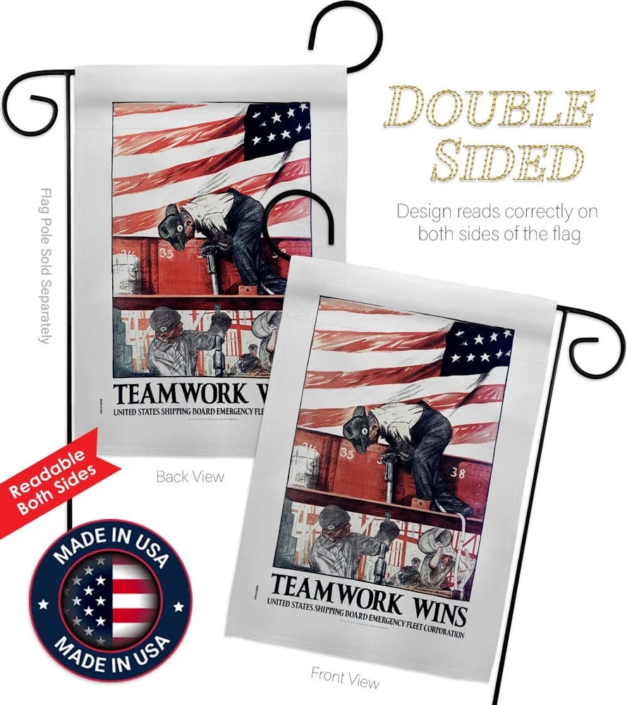 PROUDLY Made In USA - Package And Product Designed In California PURCHASE WITH CONFIDENCE - From 's US Authorized Resellers MADE OF DURABLE - 100% Thick Polyester Fabric construction helps resist the wear and tear from frequent use TEXT READABLE BOTH SIDES - Garden Flag Set Double-Sided Print DURABLE FLAG - Double stitching panels on multiple rows and high quality Sleeve to provide lasting strength VIBRANT COLORS - With UV-Resistant Maintains Its Colors All Season Long FEATURES - Free Breaks Down Metal Garden Flag Pole Included!