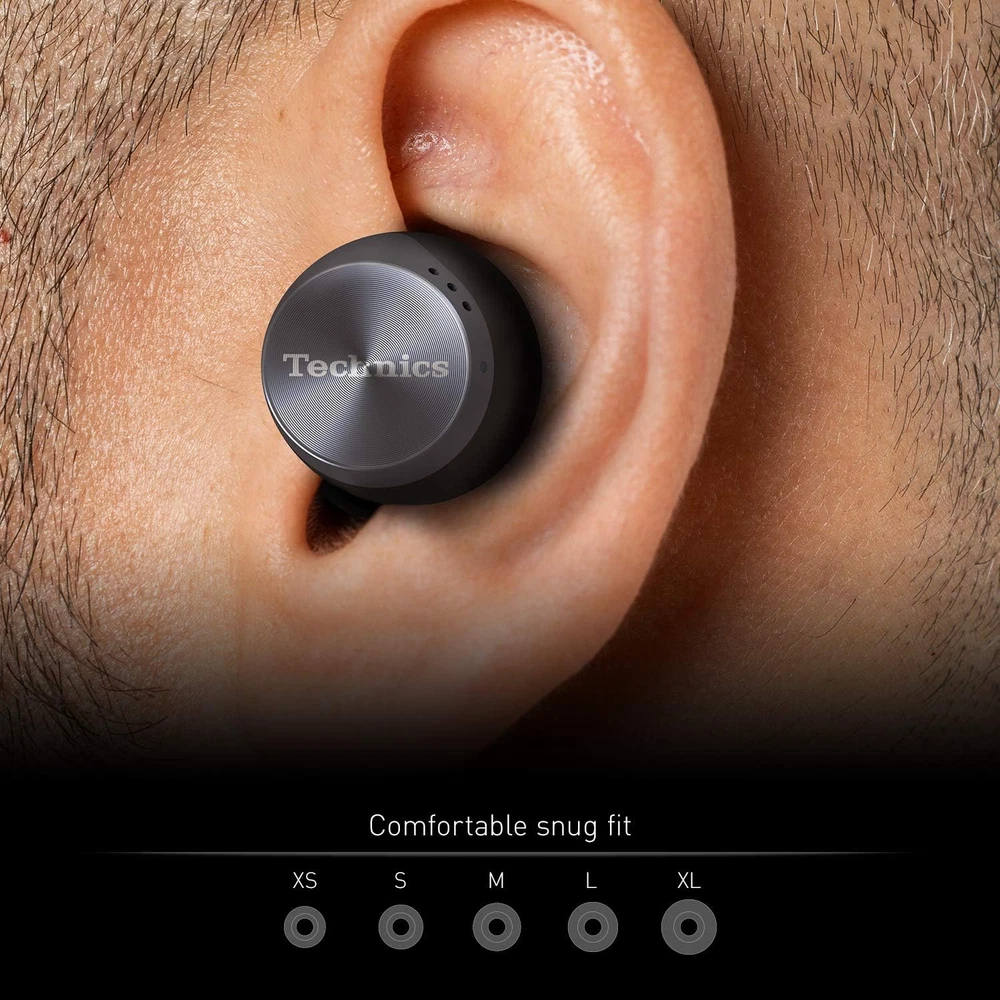 Technics True Wireless Earbuds with Industry Leading Noise Cancelling, Bluetooth Earbuds, Dual Hybrid Technology, Hi-Fi Sound, Compact Design, Alexa Compatible, Black Key Features Dual Hybrid Noise Cancelling Technology Technics’ newly-developed, proprietary Dual Hybrid Noise Cancelling Technology combines analog and digital processing for one of the best noise-cancelling true wireless earbuds on the market. With Feedforward and Feedback methods, experience effective noise cancellation while listening to your favourite music. Turn on ambient noise amplification when you want to hear external sound. Technics Sound Technology uses a wide ⌀10mm dynamic driver, creating a wide sound field and space perception that sounds like it's coming from much larger speakers. The earbuds are also treated with graphene coating to increase their strength and reduce components vibrating unnecessarily in the diaphragm, creating an elegant vocal sound. The Acoustic Control Chamber positioned behind the driver precisely controls the airflow to the front & back of the diaphragm for optimising the driver performance. Elegant & Stylish Design A compact circular design has been adopted for the EAHAZ70W true wireless earbuds. A spin treatment that symbolises the high-quality design of Technics headphones has been applied to the ornamental part to achieve a high-grade appearance. The charging cradle has a lightweight and high-grade appearance with the aluminium material, and features an upper surface hairline and engraved logo that marks the true Technics hi-fi audio quality. Reliable Connection The Left-Right Independent Signalling System helps maintain a stable connection with proper sound balance between right and left channels. The high performance MEMS microphone and labyrinth cabinet structure, combined with the beamforming technology deliver excellent voice call quality. Audiophile-Grade Sound Large 10mm dynamic driver adopting graphene coated PEEK diaphragm and acoustic control chamber are designed to deliver a dynamic feeling. Excellent Call Quality Beamforming technology and high performance MEMS mic reduce wind noise and transmit voice clearly. Control at Your Fingertips Dual touch sensors allow you to easily control music playback, volume and tracks, as well as receive, reject or end calls, manage noise-cancelling and ambient sound amplification, and interact with voice assistant. Long Battery Life 2-hour charge = 6.5 hrs of playback*. Charging cradle provides up to 18 hrs playback*. *approximate General Features and More Info Water Resistant IPX4 water resistance protects from sweat and splashes. Lightweight, Comfortable Fit Comes with 5 earpiece sizes for the perfect, comfortable fit (XS, S, M, L, XL). Technics Audio Connect App Various functions are available by installing the free Technics Audio Connect app onto your smartphone - it enables easy pairing and initial settings. IMPORTANT INFO While we do our best to describe the item and take utmost care to package it but as humans we are capable of making mistakes. We sell a lot of open box items and that is why you always get the best prices in our store but expectations could vary for every buyer. If there is ANY issue with the product you have received, please contact us and we will rectify the issue. After any transaction ebay gives you a chance to leave feedback and DSR ratings for the seller. We strive for a 100% positive feedback and 5 Star EBAY DSR ratings. Please contact us if you plan to leave any less than a 5 star rating for us. We will do our best. This is our promise. If you are unhappy and would like to return the item, we will do that gladly. We will get the item back and will issue a full refund. You can buy from us with complete confidence. Warranty We offer a warranty period for all our products which is mentioned in the listings, during which we will be happy to replace the item, if we are unable to provide a replacement or repair the item, we will issue a full refund. Contact us We can be contacted at any time through eBay messages if you have any questions, comments or product requests. We will respond to you within 48 hours and do our best to help you out! We encourage our customers to contact us with any questions or concerns! We'd like to be sure you are completely satisfied with your purchase. Why Buy From Us While there are tons of open box products being sold on ebay, we are different in our approach towards consumer satisfaction. We stand behind our sales & hold full responsibility towards what we sell. Our items are fully tested and functional and ship with all required peripherals and manuals (electronic manuals are provided where paper manual is not available), packaged nicely.