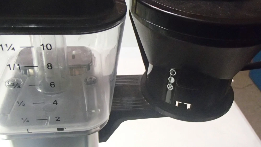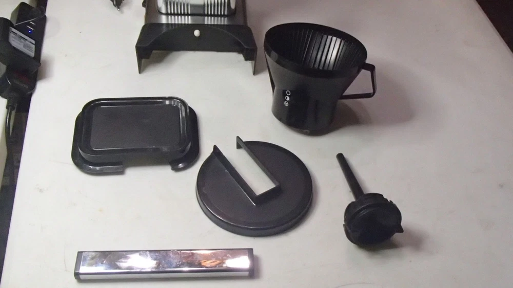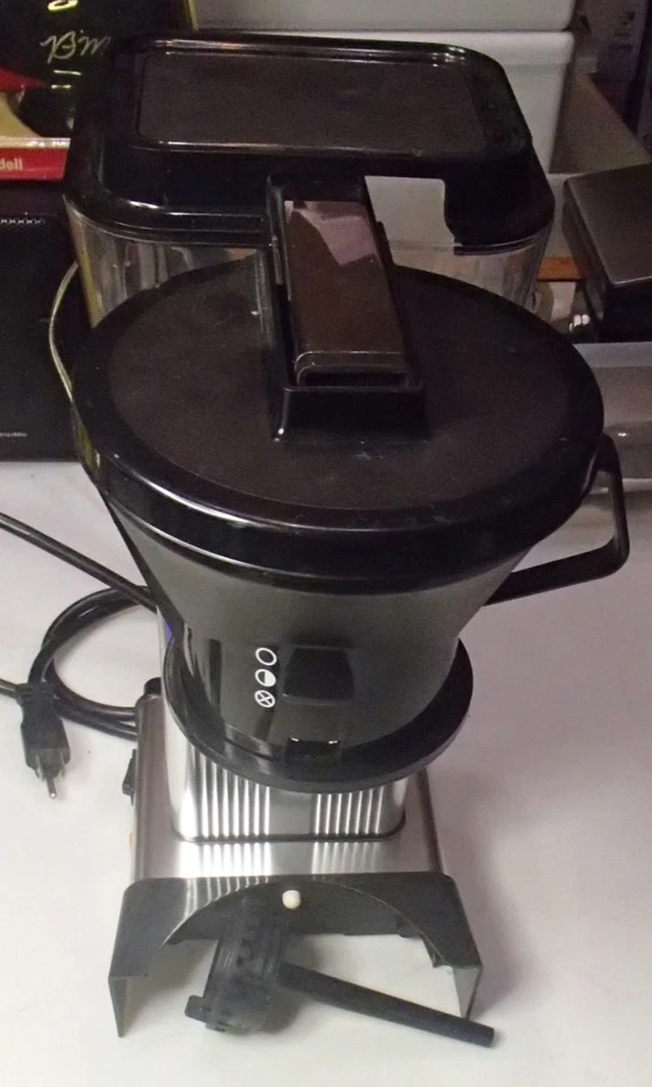 Technivorm Moccamaster KB 741.03A 10 Cup Thermal Coffee Maker Without the thermal carafe I used this mainly to make coffee straight into a cup. It works fine that way as long as you have something to set the cup on that will also engage the white button because the white button has to be engaged to brew. The original thermal carafe was large enough at the base to press the button and also fit right under the drip basket. There are workarounds or you can find the original thermal carafe to go with it. The filter basket has a little switch with 3 positions. Full flow, reduced flow for a smaller brew, and stop that really doesn't stop completely, but slows it down further to just a frequent drip. Used and selling as is as described.