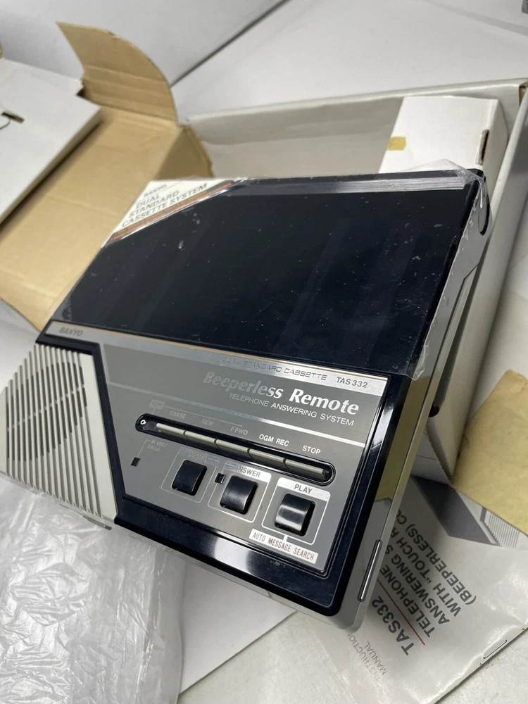 This vintage telephone answering machine from Sanyo is a great addition to your home telephone system. With its sleek black color and advanced features, it is perfect for managing multiple calls and ensuring that you never miss an important message. The model number is Sanyo TAS332 and it comes in a new open box, ready to be installed. The brand of this answering machine is Sanyo, a trusted name in consumer electronics. It is designed specifically for home use and has a user-friendly interface that is easy to operate. The machine is perfect for those who want to keep a record of their calls and ensure that their messages are always clear and easy to understand.