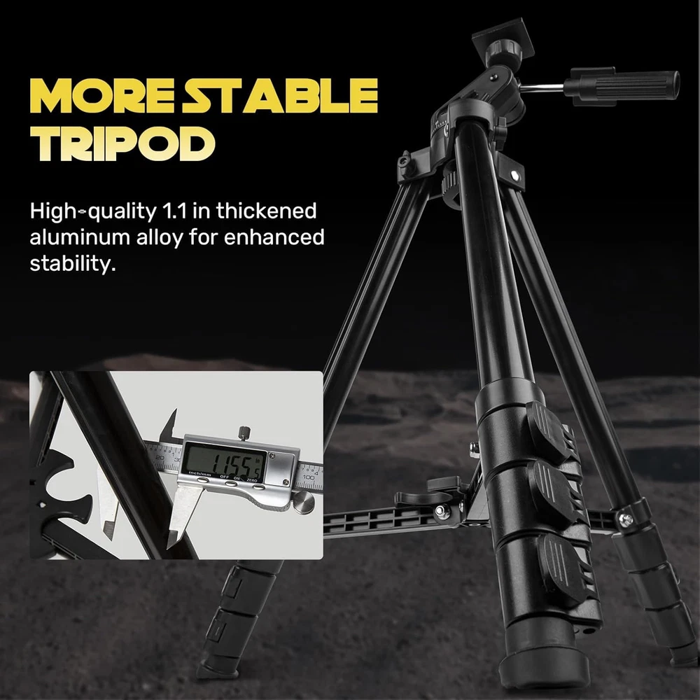 Store New Arrivals Add to Favorite View Feedback Contact Telescope 80Mm Aperture 500Mm Refractor Telescope for Adults, Telescopes for Astronomy with Fullsize Tripod & Phone Adapter, Portable Telescopes Backpack Description Objective Lens Diameter 80 Millimeters Eye Piece Lens Description Standard eyepiece lens material and coatings for K20mm and K9mm eyepieces Product Dimensions 17.32"D x 11.41"W x 5.72"H Compatible Devices Smartphone Item Weight 7.05 pounds Lens Coating Description Multi-Coated Exit Pupil 3.2 Millimeters Focus Type Manual Focus Finderscope Reflex [A LARGER AND CLEARER FIELD OF VIEW] Our telescope features an 80mm aperture and a 500mm focal length, Compared to a 50mm aperture, it provides a broader field of view. Additionally, it is equipped with multi-coated optical lenses that effectively enhance light transmission, reduce chromatic aberration, and offer a larger and much clearer field of view. With this telescope, you will be able to observe celestial bodies with clarity and receives more intricate details. [ENHANCED VIEWING EXPERIENCE] Our telescope comes equipped with two top-quality Kenller eyepieces (K20mm and K9mm), offering an exceptional magnification range from 25x to 55x. With a variety of magnification options at your fingertips, effortlessly adjust the magnification to observe captivating lunar details like never before – from mesmerizing craters to majestic mountains. Embark on a journey into the enchanting lunar landscapes with stunning detail. [EASY TO INSTALL, CONVENIENT TO CARRY] Telescopes is designed with user-friendliness in mind. You can effortlessly set up the telescope within 15 minutes, thanks to the accompanying instruction manual and installation guide that serve as your best assistants. Additionally, you can easily pack the telescope and all its accessories into the provided backpack. Whether you're admiring the stars, moon, you will never miss an opportunity to embrace the beauty of nature. [THE WONDER GIFT FOR ALL] Looking for an extraordinary gift that appeals to all ages? Look no further! Our telescope is the ideal present for dads, moms, sons, daughters, grandkids, boyfriends-in-law – anyone fascinated by the cosmos. Its versatility and ease of use make it an excellent choice for both beginners and experienced enthusiasts. [WARRANTY AND SERVICE] With over 20 years of industry expertise, our team of technical experts is dedicated to providing exceptional service and support. When you register your telescope with HOROX, you receive a warranty, ensuring your astronomical journey is backed by an unwavering commitment. Product Description HOROX 80MM APERTURE 500MM, BRING YOU INFINITE POSSIBILITIES TO EXPLORE THE UNIVERSE! UNPARALLELED 80MM APERTURE Unleash the power of an impressive 80mm aperture, capturing more light and revealing celestial objects with astonishing clarity. Immerse yourself in a world of vibrant details and awe-inspiring views. 2 EYEPIECES PROVIDE DIFFERENT LEVELS OF DETAIL The HOROX astronomical telescope is equipped with 20mm and 9mm eyepieces, each offering distinct details. By adjusting the focal length, you can achieve magnification ranging from 20x to 55x. 45° DIAGONAL Telescope for adults paired with a 1.25-inch prism that boasts a 99% light transmission rate and minimizes chromatic aberration to the maximum extent. The 45-degree design ensures a comfortable viewing experience, whether you're observing the moon or distant landscapes. 5 X 24 FINDERSCOPE The 5x24 star finder scope offers a wider field of view, allowing you to observe a broader area. With its assistance, you can quickly identify observation targets by referencing the relative positions of stars and then use the telescopes to further explore celestial details.(Note: The image of the finderscope is inverted) NEW UPGRADED PHONE HOLDER The mobile phone holder is designed with different eyepiece focus holes, eliminating the issue of mismatch between the size of the phone camera and the eyepiece hole. This ensures a seamless experience when using your phone for photography, minimizing any noticeable artifacts caused by incompatible hole sizes. A MORE STABLE TRIPOD Crafted with a 1.1 inchs thick aluminum alloy, the tripod offers three adjustable settings to accommodate various usage scenarios. Equipped with a built-in level gauge and compass, it allows for quick adjustments during use. With 360° rotation and 180° angle adjustment, you will no longer be limited when observing celestial objects. ABOUT US We offer the best prices around on high quality products. Our E-store includes media such as books, movies, music and games while offering electronics, toys, sporting apparel, clothing, tools, general home, garden items and more. SHIPPING We are always working hard to ensure your package arrives as soon as possible. Please understand that some factors like weather, high postal traffic, and the performance of shipping companies are outside of our control. We offer free shipping to the lower 48 states and ship within 2 business days of payment, usually sooner. We do not accept P.O. Boxes. Please provide a physical address. For shipping outside of the continental USA, we only use eBay's Global Shipping Program.The item is shipped to KY and then sent to the rest of the world. International customers are responsible for all duties and taxes. Continue to check out in order to calculate costs for shipping the item to your country. Messages regarding eBay's Global Shipping Program MUST be directed at eBay EXCLUSIVELY. RETURNS We offer a 30-Day Return Policy on items which you are not completely satisfied with. You have the option for a full-refund or an exchange of the item. No returns are available on items shipped outside of the USA. PAYMENT We accept PayPal. CONTACT US This page content is yet to come Please ad us to your favorite seller and visit again later Thank You CUSTOMER SATISFACTION We try our very best to make sure every customer is completely satisfie