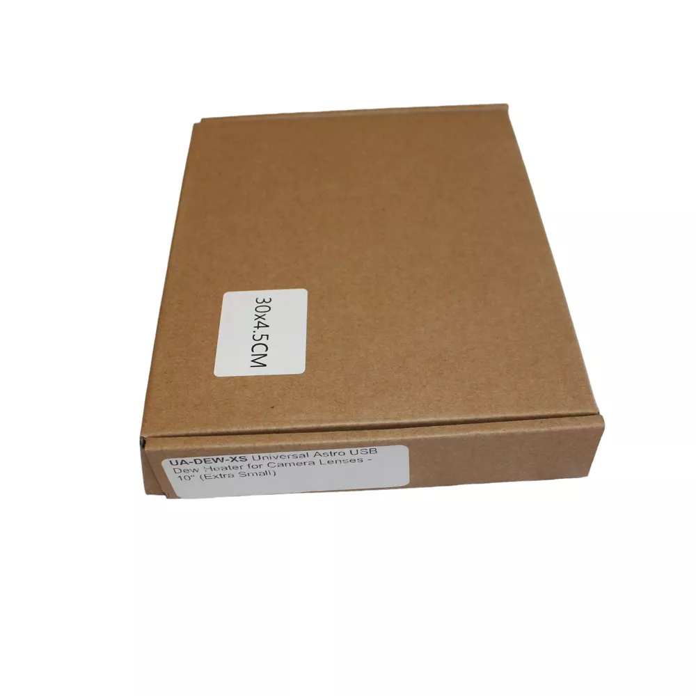 USB Dew Heater Strip with Controller for Camera and Telescope Lenses 10". It will fit lenses up to 3" in diameter. The included controller has an on/off switch with 3 different heat settings. It can easily be powered with a mobile phone power bank.