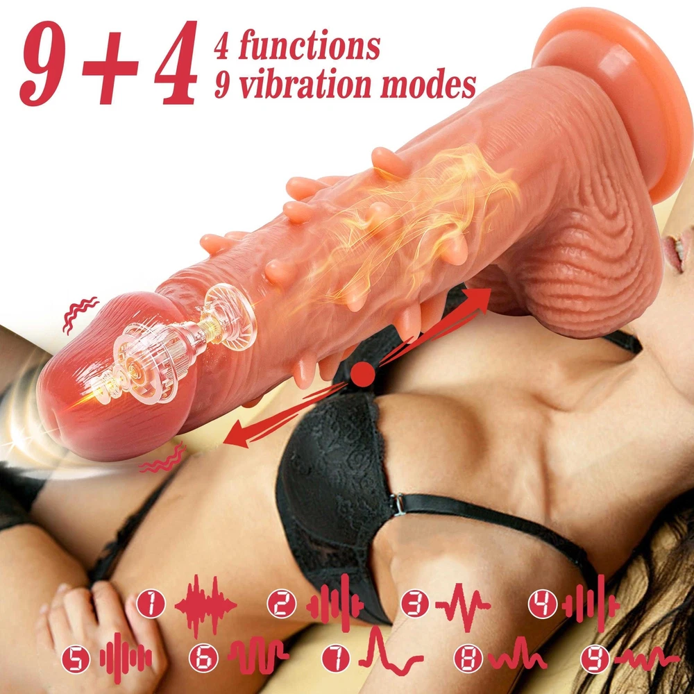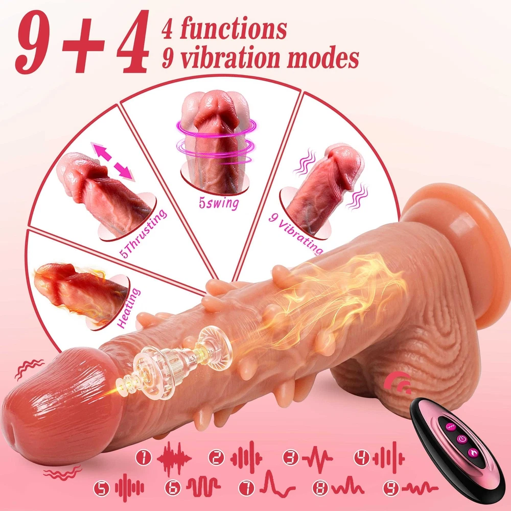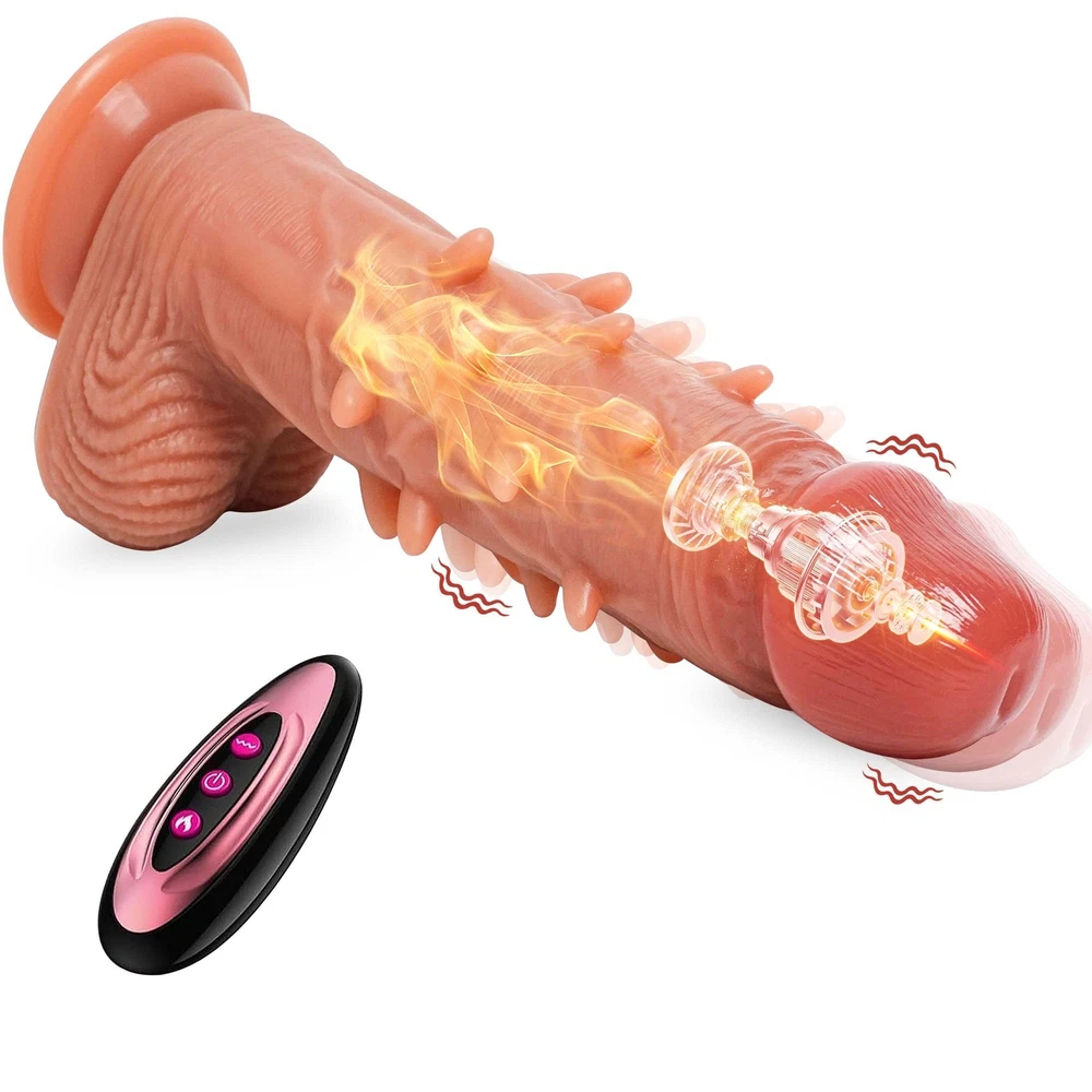 <> <> <> Function: Vibrating&Heating&Thrusting&Rotating Dildo About this item: 【9 Vibration modes】With 9 vibration patterns that range from soft to deep and powerful, this is the masterpiece to get your pulses racing. Wireless remote control, vibrator sex toy for men and women, it's the perfect dildo for men toy for solo and couples play that love some shimmer and shine in their life. 【Charging & usage duration】Please charge the product for the first time.It takes about1.5-2 hours for a complete charge.The appliance can be used for 45-90 minutes after full charging.You don't have to run out of power before charging. 【Soft material & Easy to clean】We come to you in the safest, most hygienic material available - premium silicone. Completely hypoallergenic, non-reactive and safe for sensitive skin, this adult sex toys are extra easy to clean.Before and after each use of the product, please clean it thoroughly. Specifications: 1. Rated voltage 3.7V, rated current8A 2. Material: Liquid silicone 3. Waterproof: life waterproof 4. Charging time: about 2 hours to full, can be used continuously for a bout 45-60 minutes 5. Remote control battery: 12V 27A 6.Product size:Total length: 21cm Penis length: 16cm Maximum width: 4.5cm Package Content: Vibrator*1 Charging cable*1 Remote control*1 Manual*1
