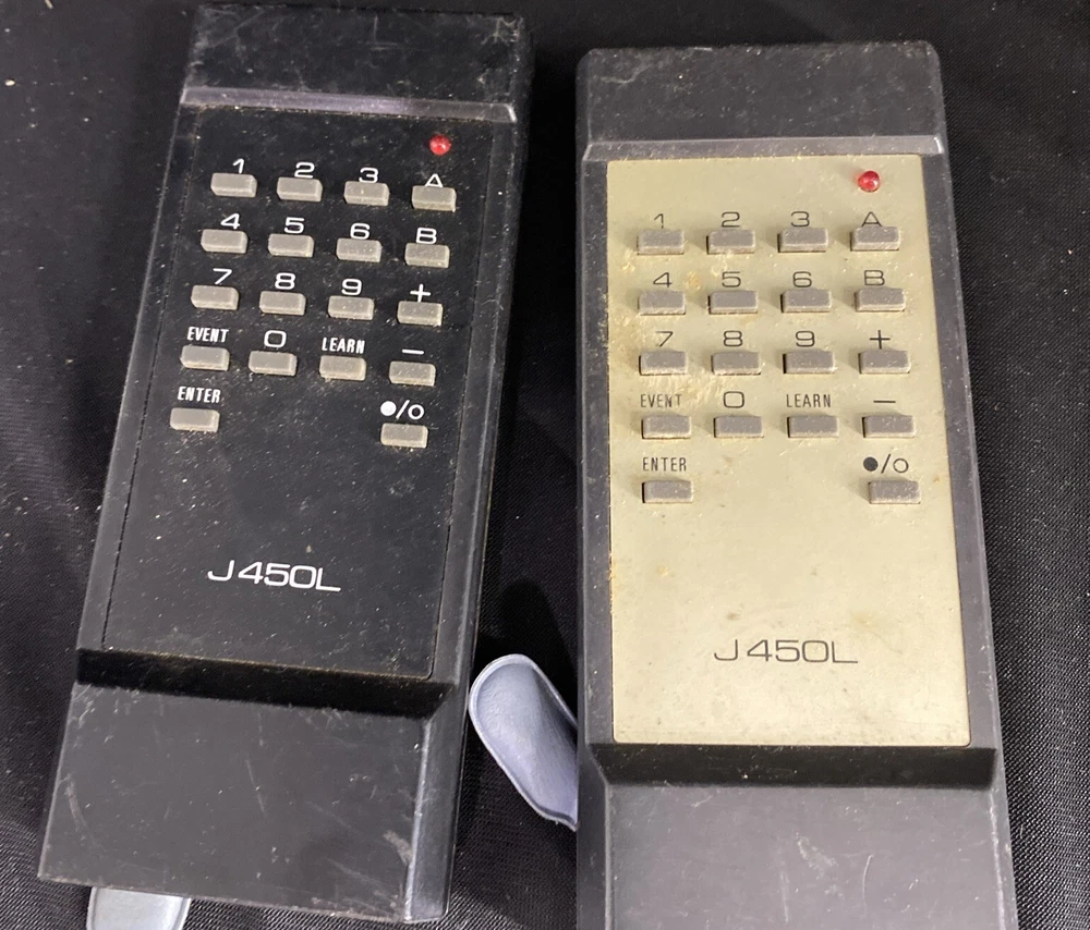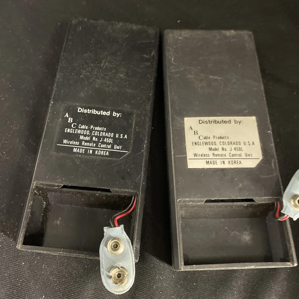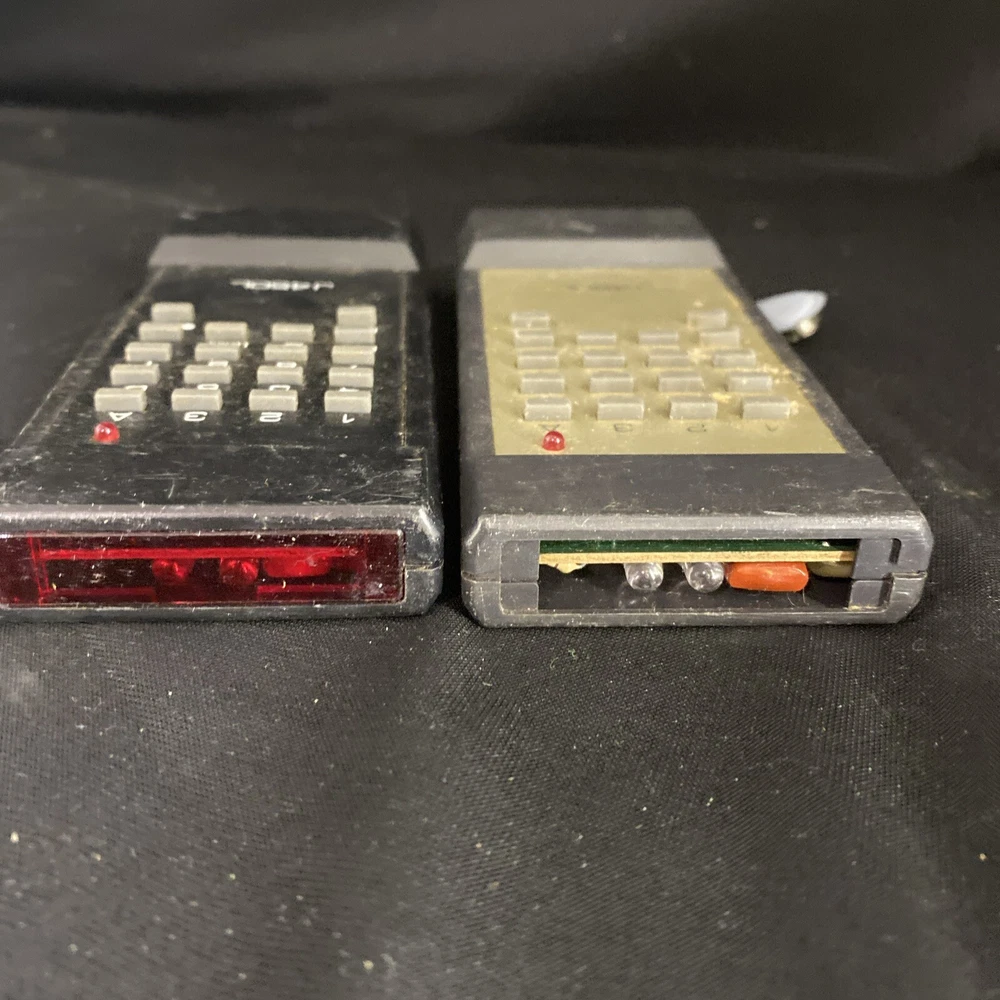 This vintage lot of 2 television remotes J450L is perfect for those looking for spare parts or a unique collection. These remote controls are compatible with various models and types of televisions, making them a versatile addition to any home entertainment setup. With their easy-to-use design and convenient functionality, these remote controls are a must-have for any TV enthusiast. Whether you're looking to repair a broken remote or simply add to your collection, this lot of 2 vintage television remotes J450L is sure to impress. Missing battery covers. One lens cover missing