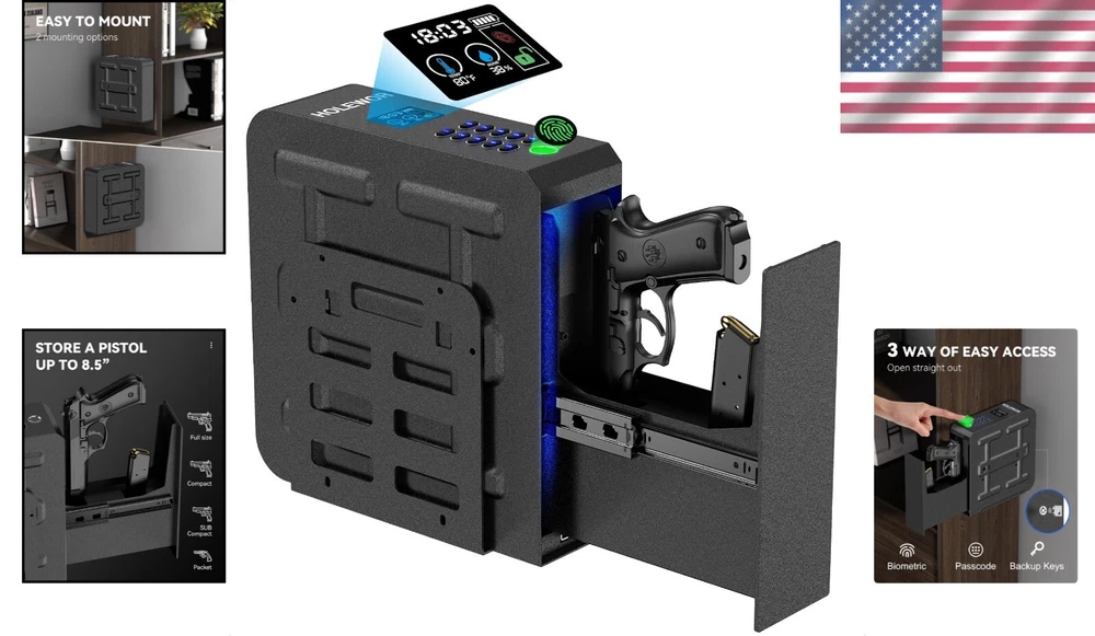 Temperature & Humidity Monitoring Biometric Gun Safe - Safe for Home Storage ‹ › ‹ › ‹ › ‹ › ‹ › ‹ › ‹ › ‹ › ‹ › Temperature & Humidity Monitoring Biometric Gun Safe Safe for Home Storage Features: Constructed from high-quality steel for strength and durability. Padded interior to safeguard your firearms against scratches and damage. Extra slot for magazine storage. Smooth and silent drawer slides for quick access. Three versatile access methods: biometric fingerprint reader, combination lock, and backup keys. LCD display for real-time temperature and humidity monitoring, ensuring an optimal environment for your firearms. Internal LED light that automatically activates upon opening for ease in low-light conditions. Silent mode feature available for discreet operation. Benefits: Secure storage of firearms, providing peace of mind for you and your family. Quick access in emergencies, maintaining safety while ensuring availability. Easy installation with adjustable mounting options for convenience. Informative LCD aids in maintaining the health of your firearms by monitoring humidity levels. Protection against unauthorized access, especially from children. Why choose our Biometric Gun Safe? When it comes to securing your firearms, nothing but the best will suffice. Our Temperature & Humidity Monitoring Biometric Gun Safe combines the robustness of heavy-duty steel construction with advanced access technology. The lightning-fast fingerprint reader guarantees swift access, while the clever design ensures that your weapons are ready when you need them but safely stored when you don’t. With features like an easy-to-read LCD monitor and customizable silent mode, this gun safe is designed with your security and convenience in mind. Take the first step in safeguarding your home with confidence - opt for our Biometric Gun Safe for unparalleled peace of mind. Shipping Free & Fast Shipping - We offer free shipping to most of the USA with a normal delivery time of 3-7 days. However, due to the current situation, additional delivery time (up to 3 weeks) may be required for some items. Alternative Carriers - We may use alternative carriers (e.g. USPS, FedEx, UPS, etc.) to ensure your package arrives safely and on time. Due to the use of multiple carriers, we are unable to provide a tracking number automatically. Handling Time - Orders are processed and shipped within 1-2 business days of receiving cleared payment. Shipping Restrictions - Shipping to Alaska, Hawaii, Puerto Rico, Guam, and other US territories may incur shipping charges or delivery restrictions. Please contact us before ordering, or your order can be refunded/cancelled. State Restrictions - There may be restrictions based on your state of purchase. For example, certain items may not be shipped to California due to state regulations. Contact for Tracking Updates - If you require tracking updates or have any concerns about the delivery of your order, please feel free to contact us, and we will be happy to assist you. Return 30-Day Hassle-Free Returns - We want you to be completely satisfied with your purchase. If you are not, you can return the item within 30 days of receiving it for a full refund or exchange. Easy Return Process - To start a return, simply contact us and we will provide you with a prepaid return shipping label and detailed instructions. Restocking Fee - There are no restocking fees for returns. However, the buyer is responsible for return shipping costs if the return is not due to a seller's error. Refund Processing Time - Refunds will be processed within 5 business days of receiving the returned item in its original condition. Payment We accept all major credit cards, PayPal, and Apple Pay for your convenience. Your payment information is secure and encrypted to ensure a safe and seamless transaction. Please complete your payment within 3 days of purchase to avoid any delays in shipping. Feedback Your feedback is extremely important to us. We strive to provide the best products and customer service possible. If you are satisfied with your purchase, please take a moment to leave us a positive review. If you have any concerns or issues with your order, please contact us before leaving negative feedback. We are committed to resolving any problems and ensuring your satisfaction. Contact Us If you have any questions or concerns, please feel free to reach out to our customer support team. You can contact us through the eBay messaging system. We are available Monday to Friday, 9:00 am to 5:00 pm EST, and we will do our best to respond to your inquiry within 24 hours. Buy it now and enjoy a pleasant shopping experience! UPC: Not Set Item Height: Not Set Unit Quantity: 5.52 kg Material: Steel,quality steel,solid construction,padded interior,heavy duty Features: Wall Mountable,fingerprint reader,3 ways access,biometric,combination lock,key access,padded interior,smooth drawer slides,vertical design,mounting bracket included,LED light,silent mode,battery level indicator For Gun Type: Pistol Type: Safe Brand: Unbranded Number of Guns: 1 Number of Keys: 2 Locking Mechanism: Biometric Lock Color: Black Country/Region of Manufacture: Not Set Item Length: Not Set Item Width: Not Set Item Weight: 5.52 kg MPN: Not Set Unit Type: Not Set Vintage: Not Set