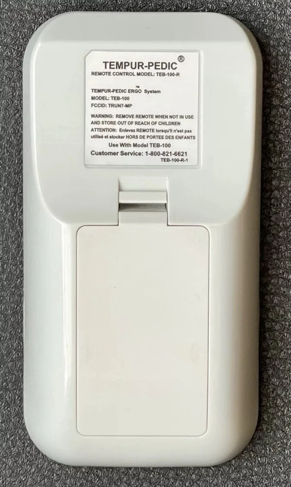 Enhance your home entertainment experience with the Tempur-Pedic TEB-100-R Ergo Plus Wireless Remote Control. This unit is compatible with Tempur-Pedic products and features a sleek white design. The remote control is easy to use and connects wirelessly for a hassle-free experience. With a length of 4.5 inches, a height of 1 inch, and a width of 2.4 inches, this remote control is the perfect size for any table or countertop. The product type is an Ergo Plus Wireless Remote Control, and it comes with a California Prop 65 Warning. This unit is ideal for anyone looking to upgrade their home entertainment setup without worrying about cords or cables.